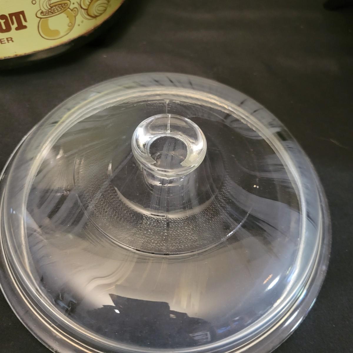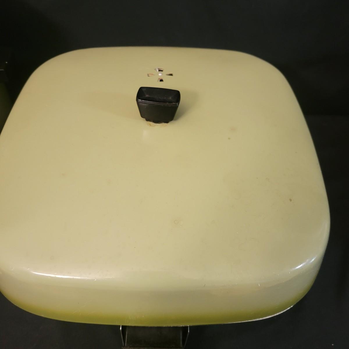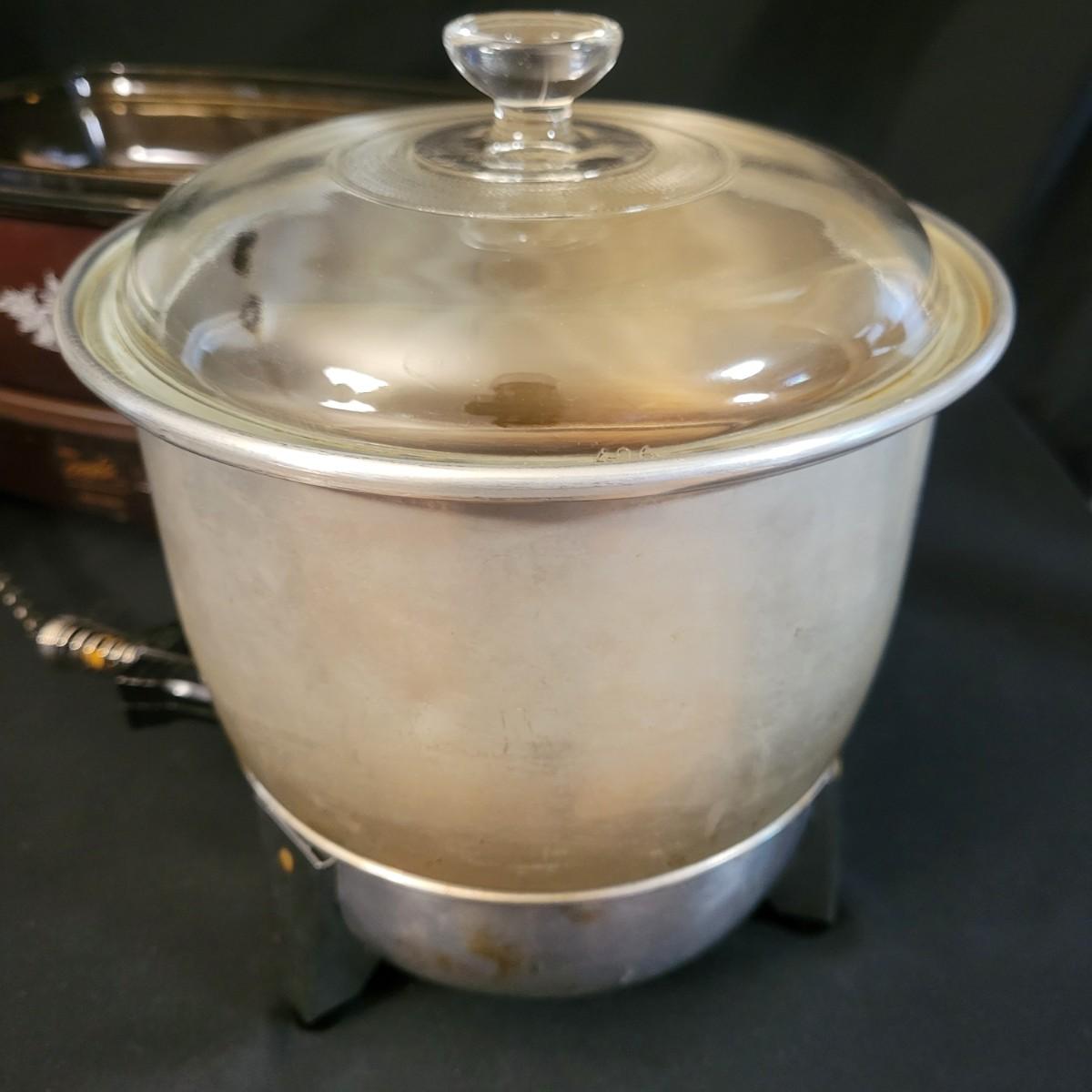 An assortment of four retro kitchen counter top appliances in good condition. All items were tested and work. Included is a Rival crockpot that appears unused, a West Bend slow cooker with a metal pan and Pyrex lid, a Sears electric skillet with lid and a Peer electric pot with a glass lid. Sears electric skillet measures approximately 12" x 12" x 7" Local pickup only