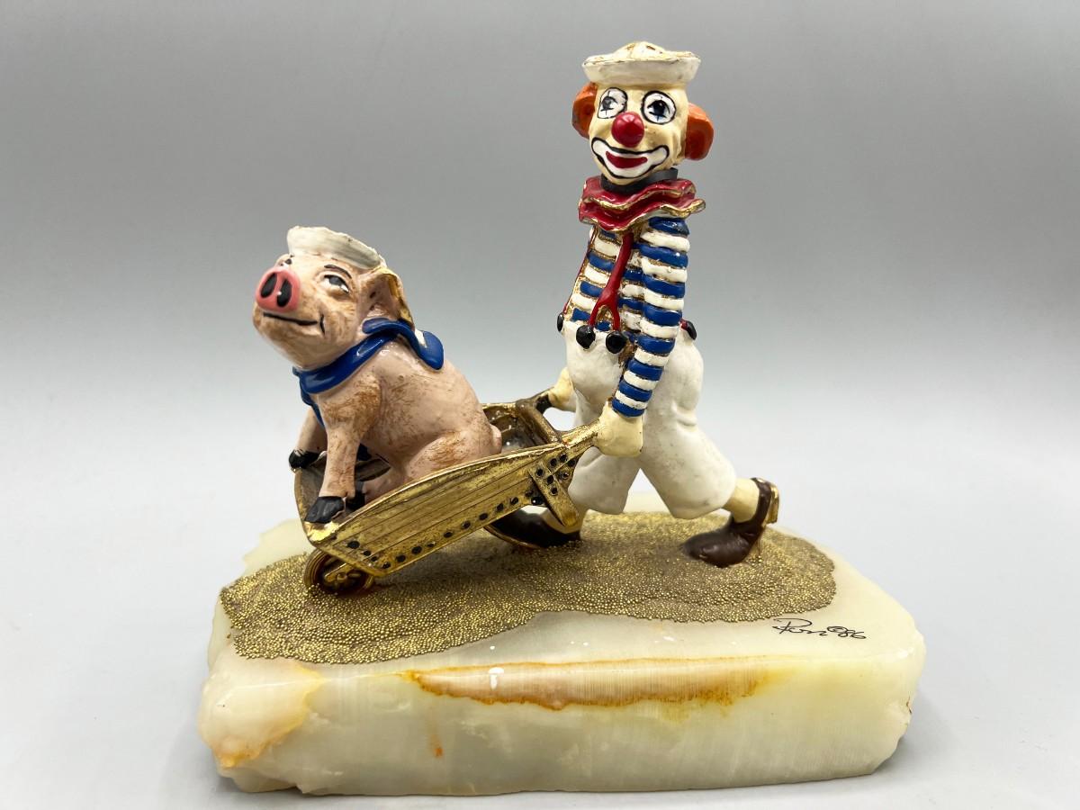 Retro Ronald A. Lee Creative Concept Clown Statue Signed 24k Gold Paint Figurine