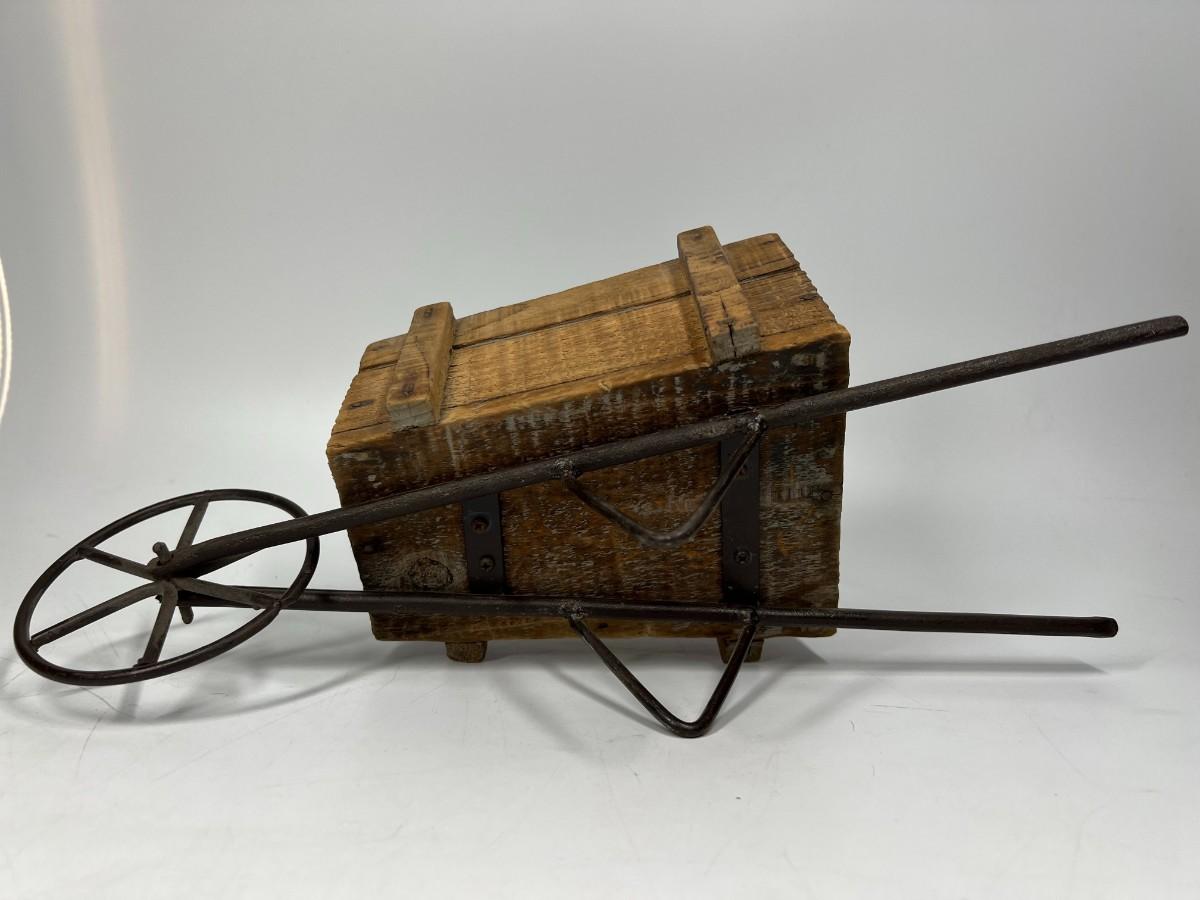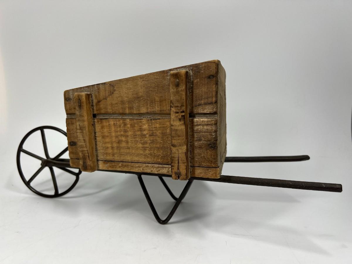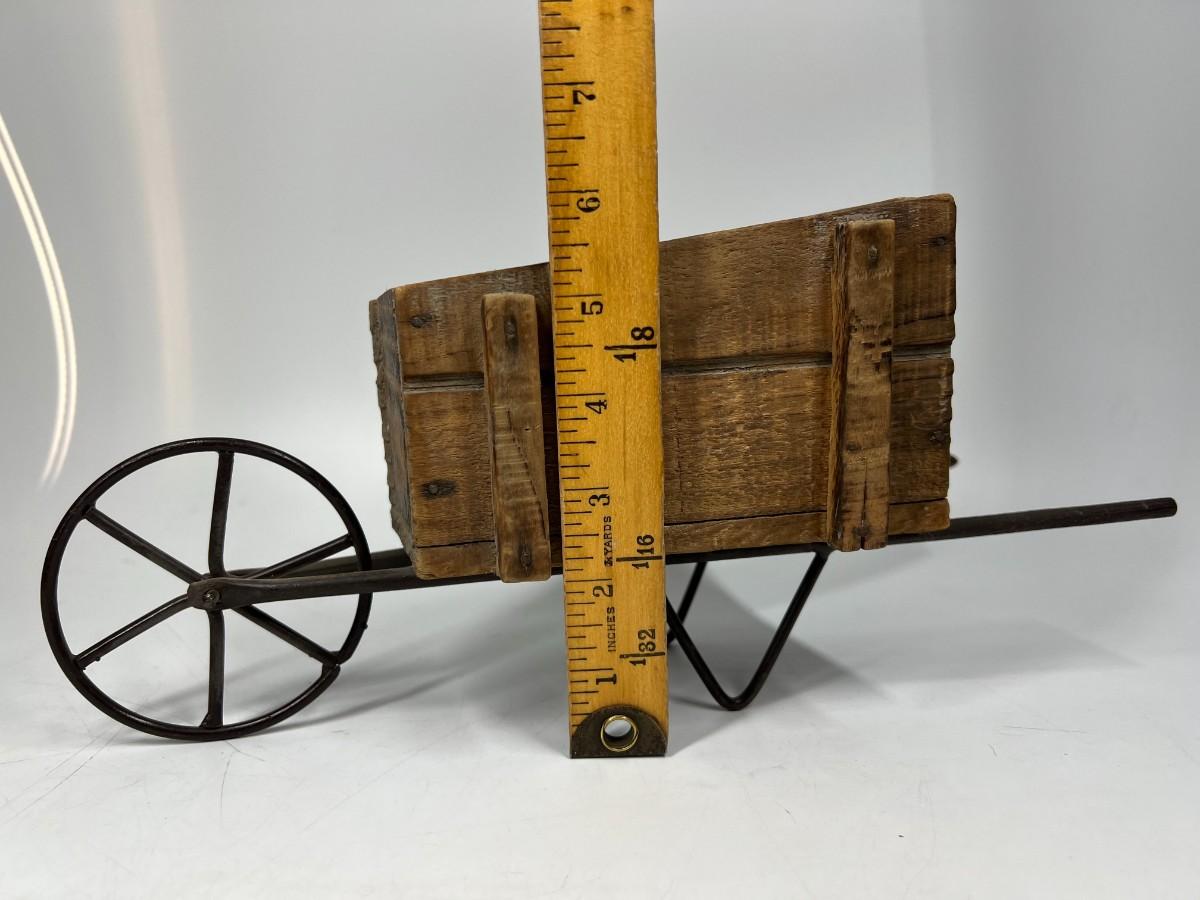 Retro Rustic Miniature Doll Size Wooden & Metal Garden Yard Art Wheelbarrow