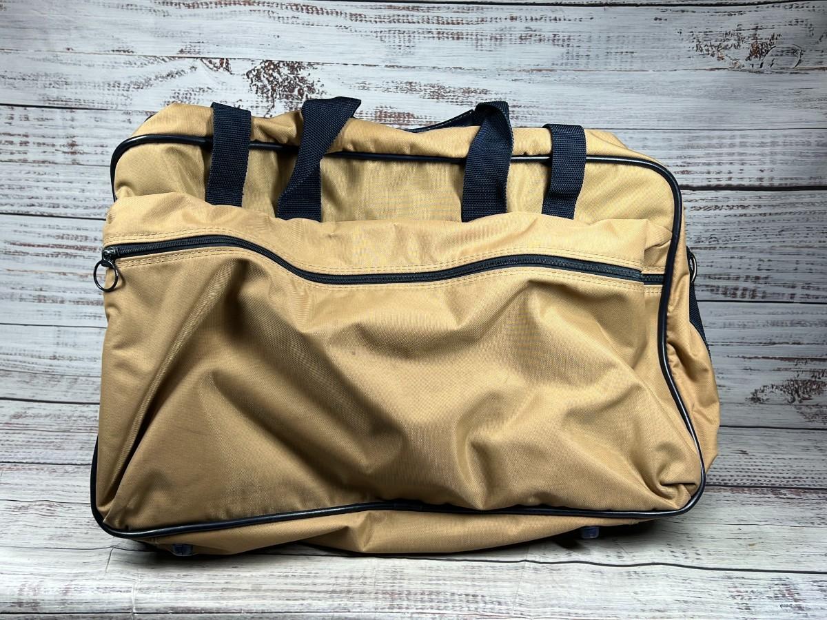 Retro Samsonite Flings Khaki Colored Travel Luggage Satchel Bag, there is some use and wear to the travel luggage, but there is no significant damage and is in overall fair condition. Check pictures for more details and for sizing.