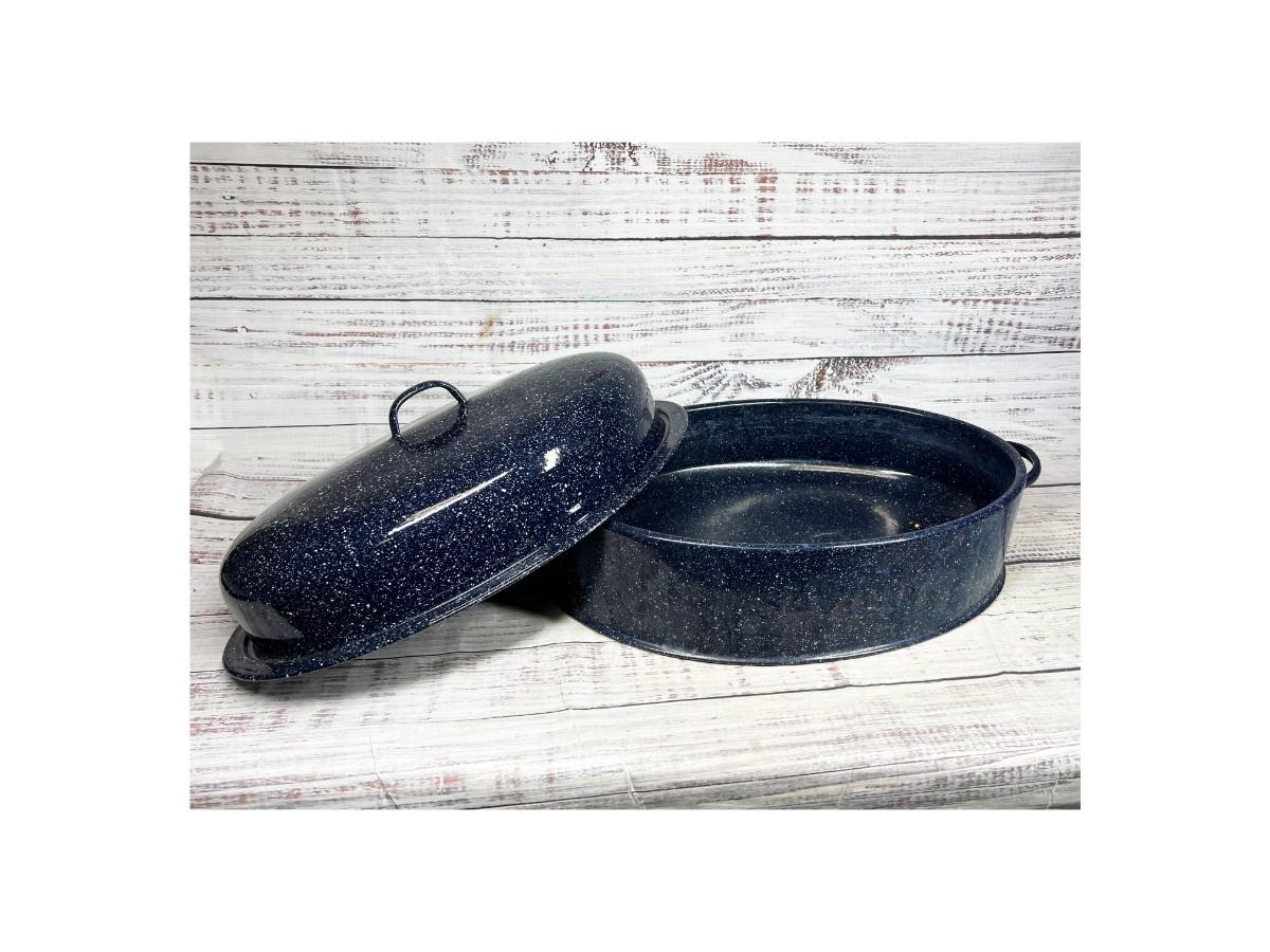 Retro Savory Blue Kitchenware Enamelware Chicken Roaster