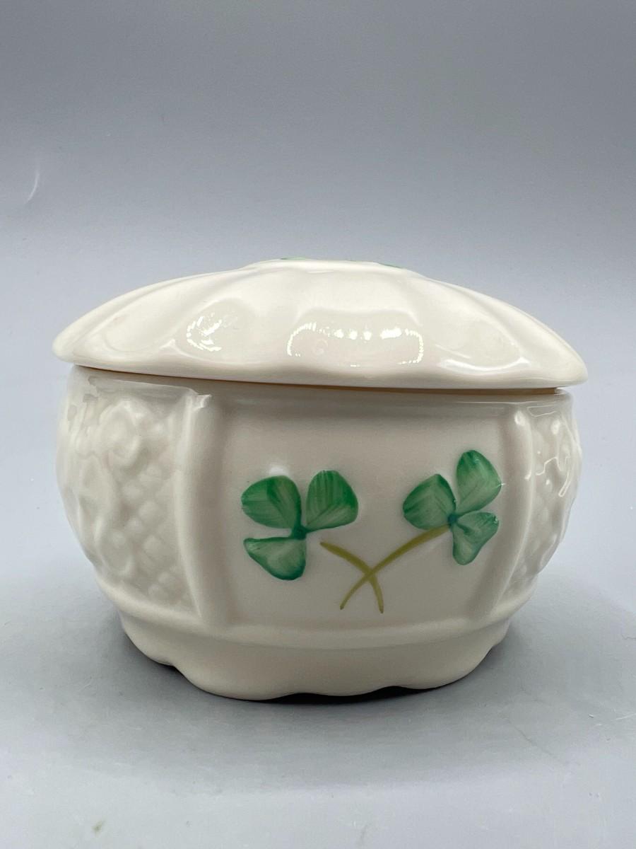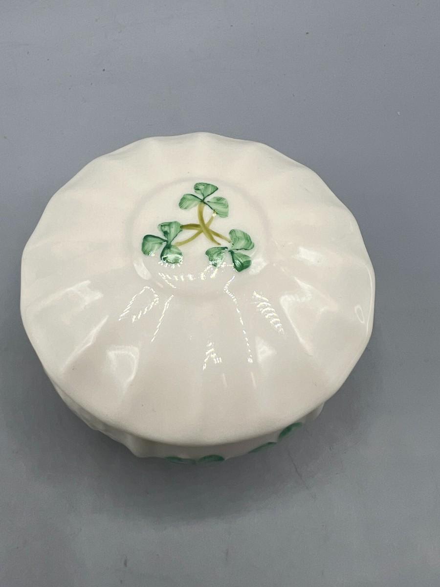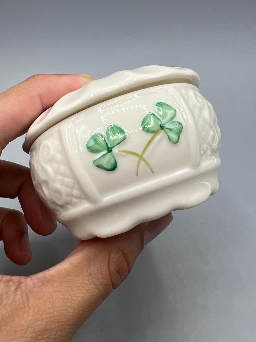Retro Small Belleek Ceramic Trinket Clover Snuff Box