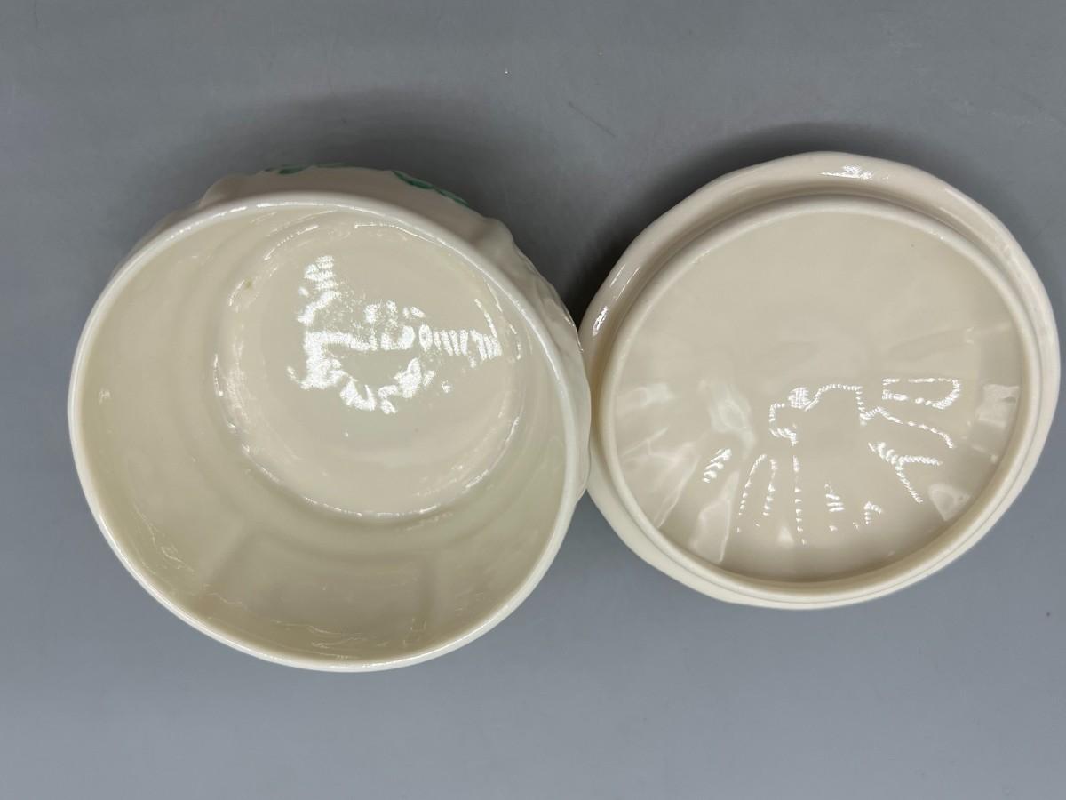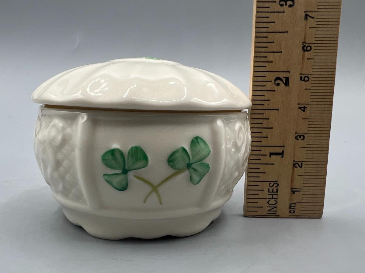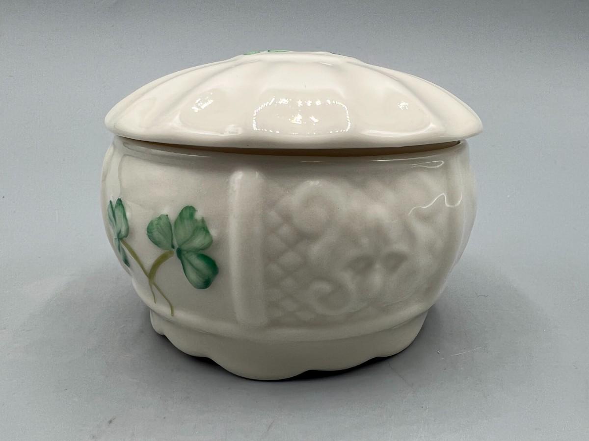 Retro Small Belleek Ceramic Trinket Clover Snuff Box