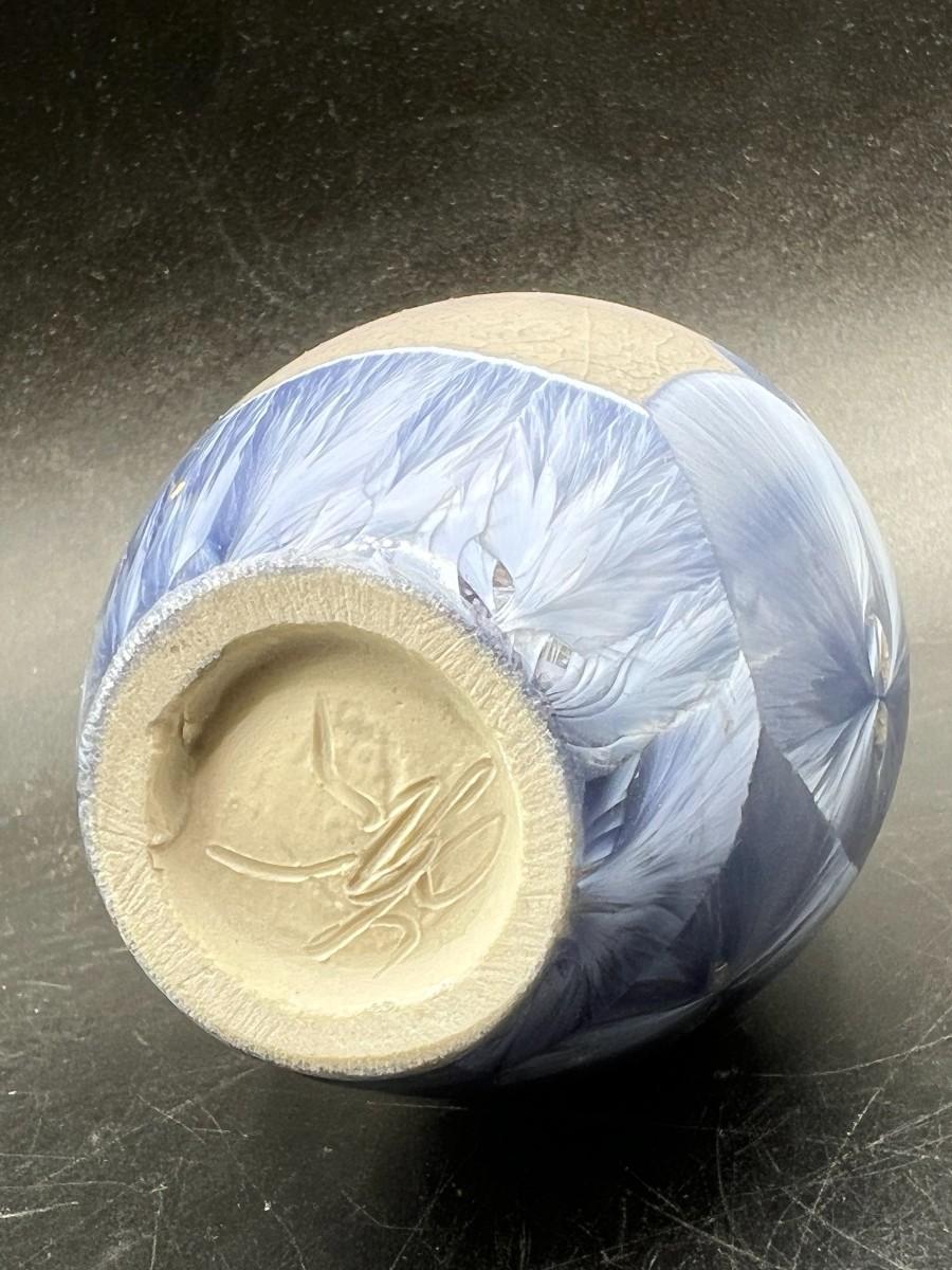 Retro Small Handmade Blue Crystalline Shimmer Pottery Vase