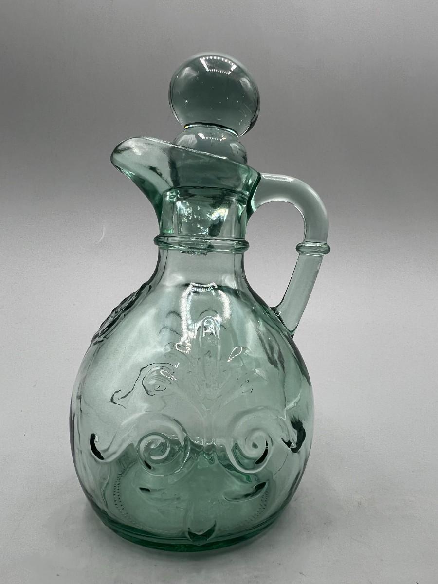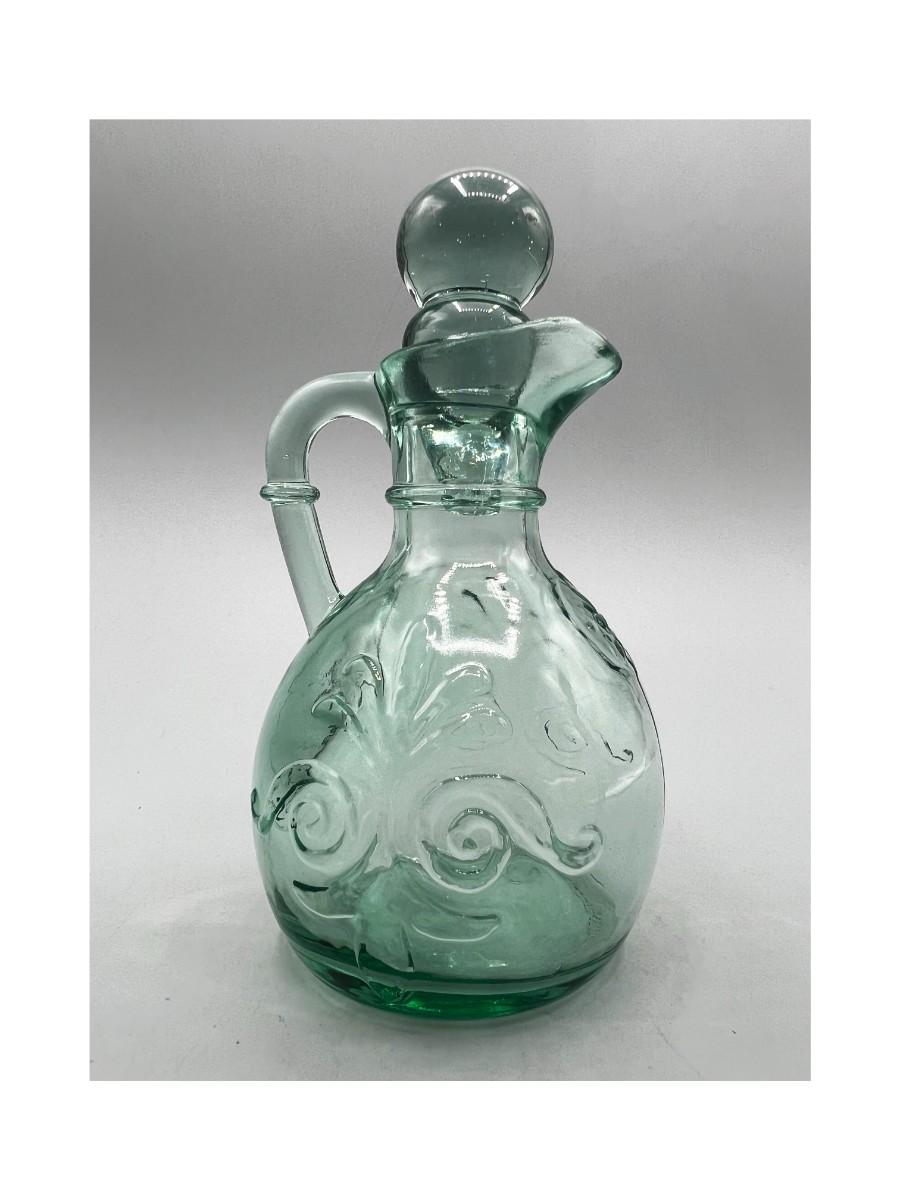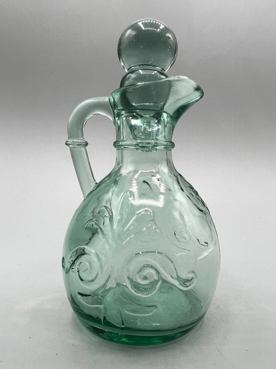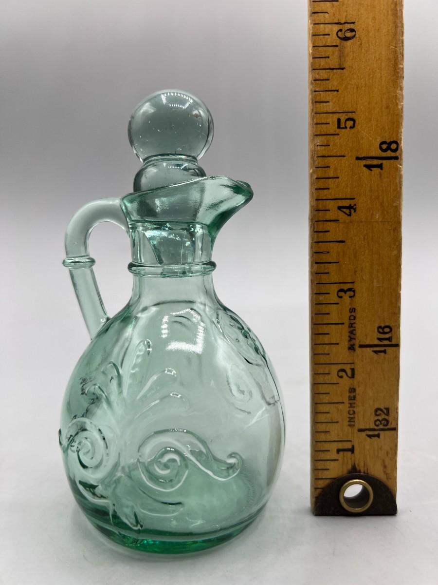 Retro Small Light Blue Clear Glass Swirl Pattern Cruet Bottle
