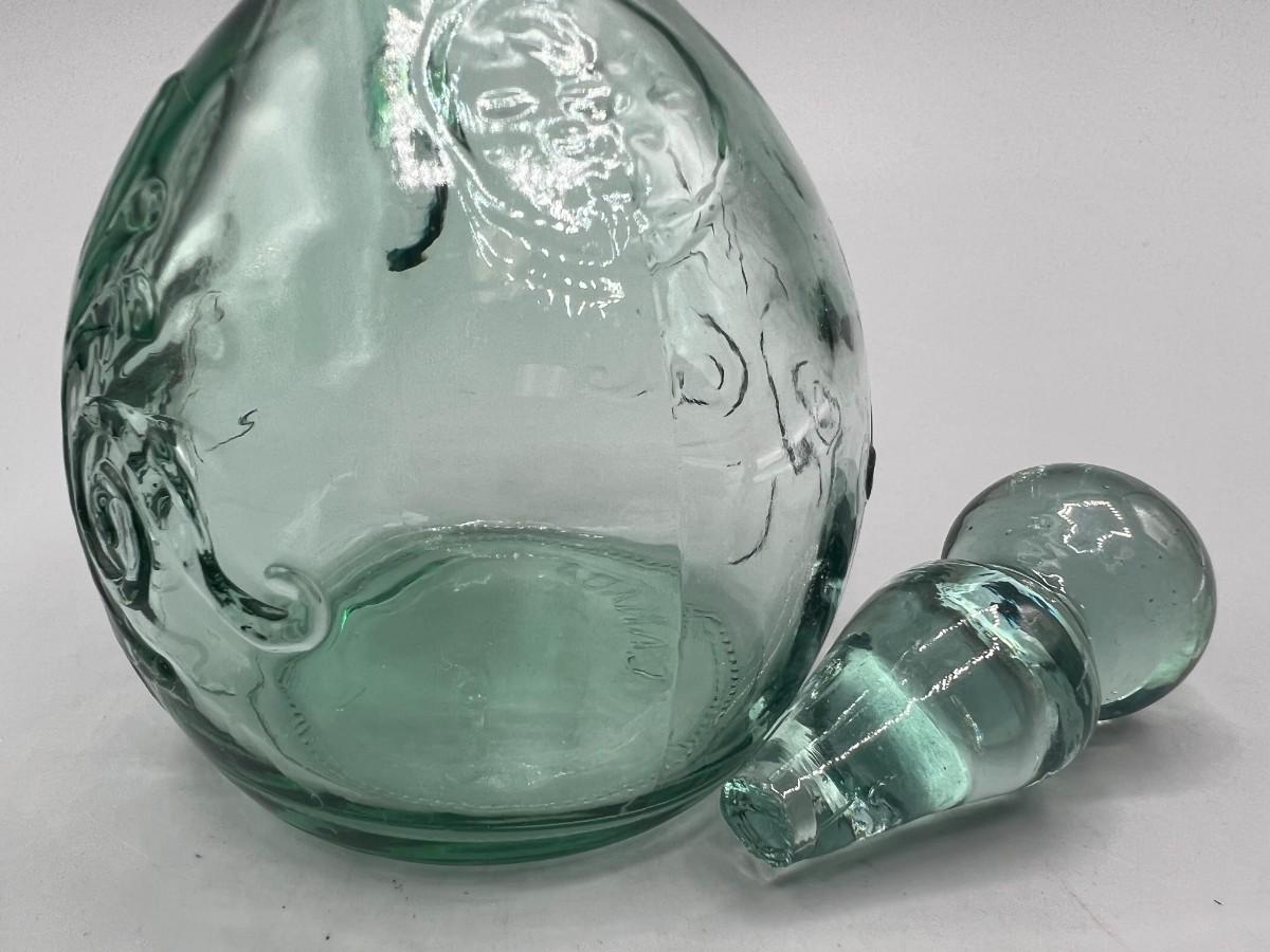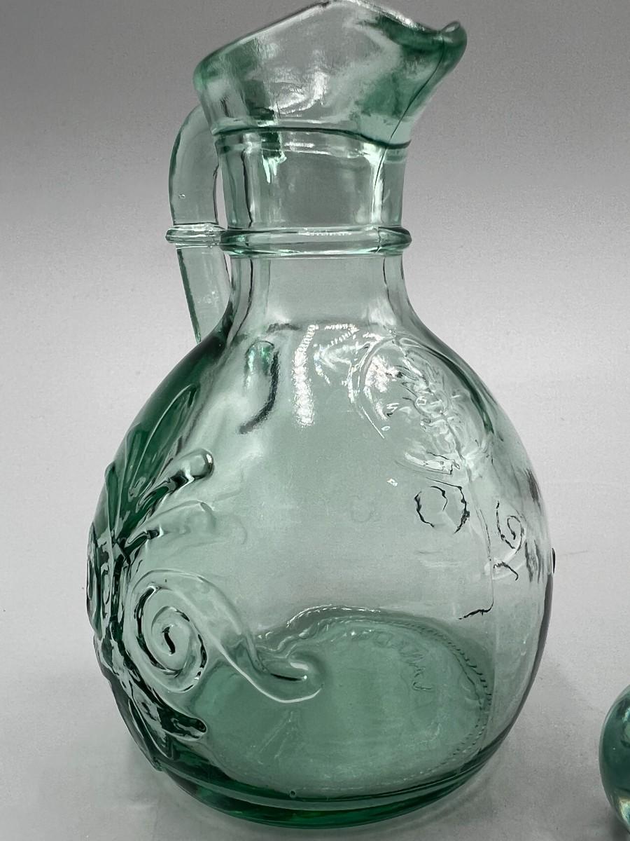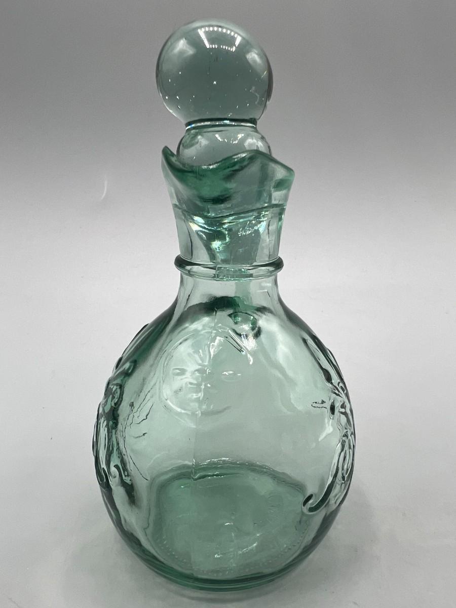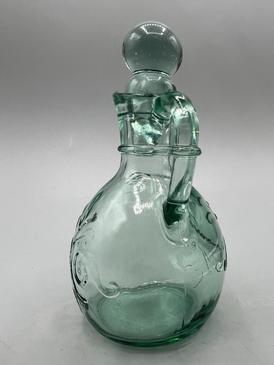 Retro Small Light Blue Clear Glass Swirl Pattern Cruet Bottle