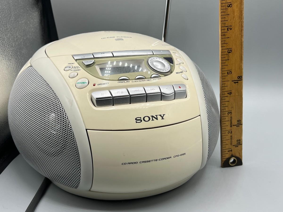 Retro Sony CD Radio Cassette Battery & Plugin Powered Boombox, there is no significant damage to the boom box and works perfectly. The radio, cassette player, & CD player have all been tested and is in good working condition. Check pictures for more details.