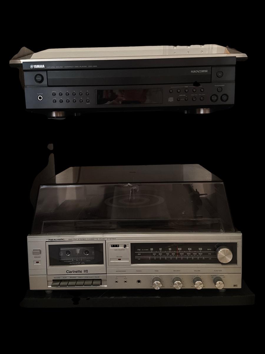 • Features: Cassette tape deck with auto stop, AM/FM radio tuner, built-in turntable, tone/balance/volume knobs, and microphone/headphone jacks. Manufactured by Radio Shack, this unit is a classic all-in-one system from the late 1970s to early 1980s.