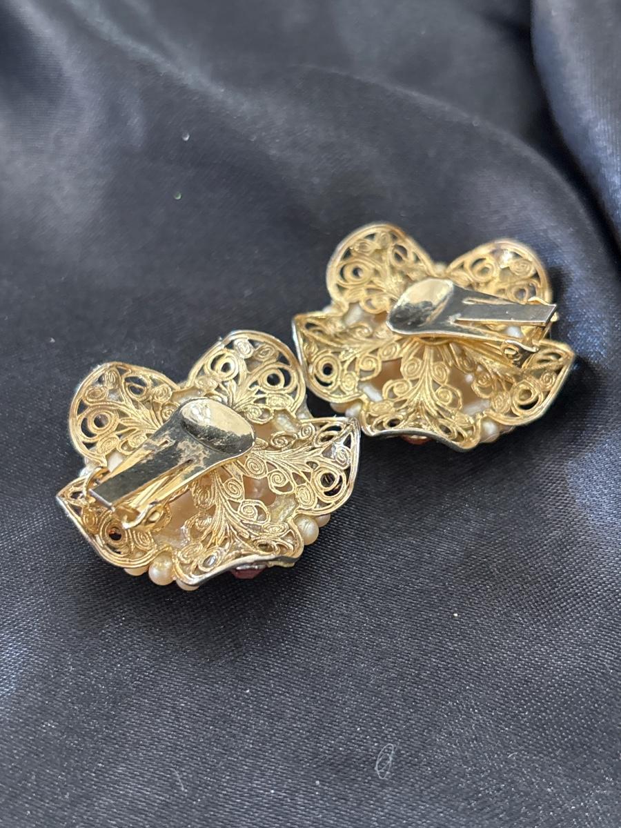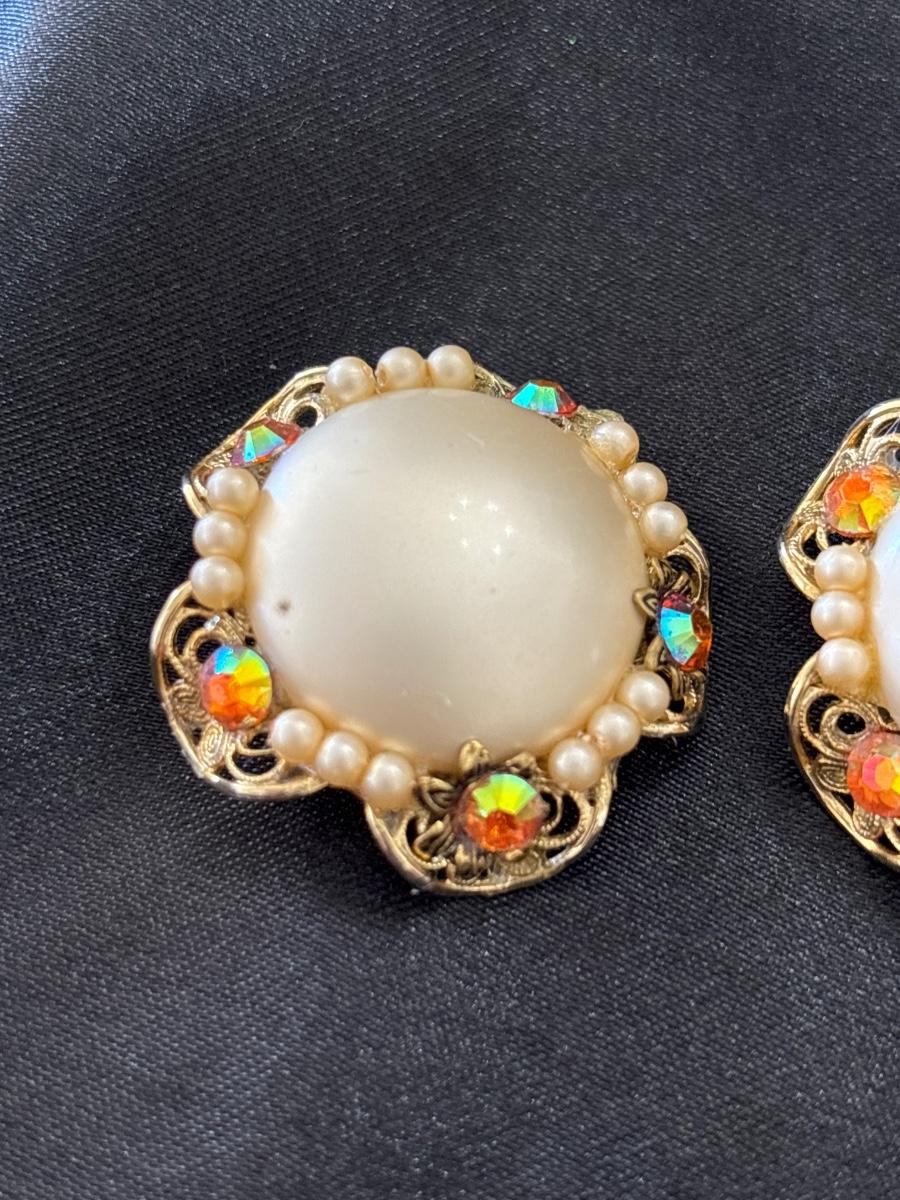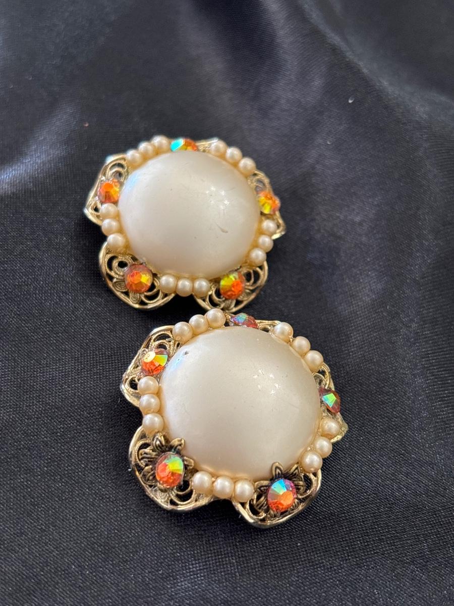 Retro Stud clip on earrings Women's Beautiful Classical Palace Style Fritillary round Pearl Earrings European and American Fashion Class