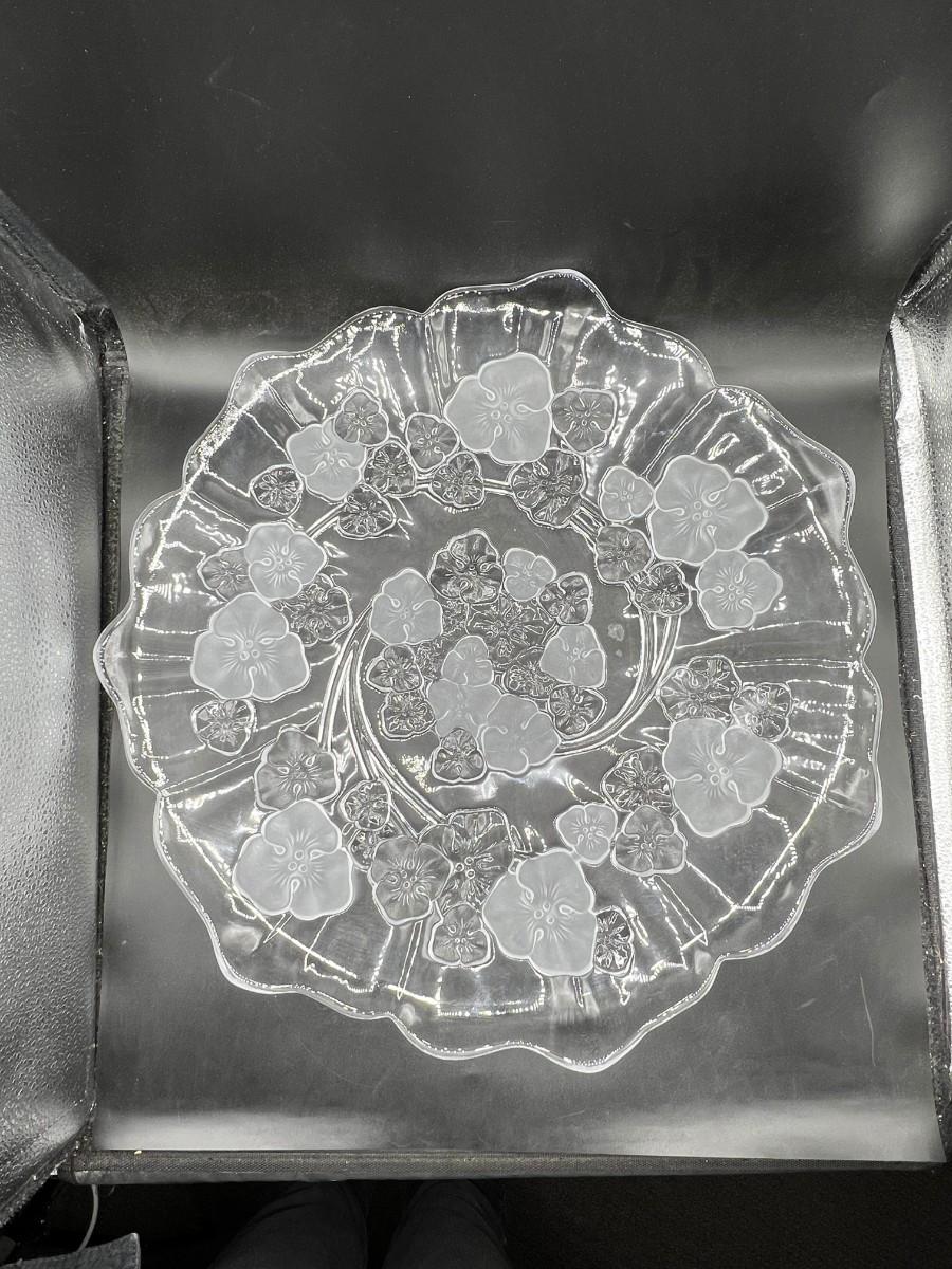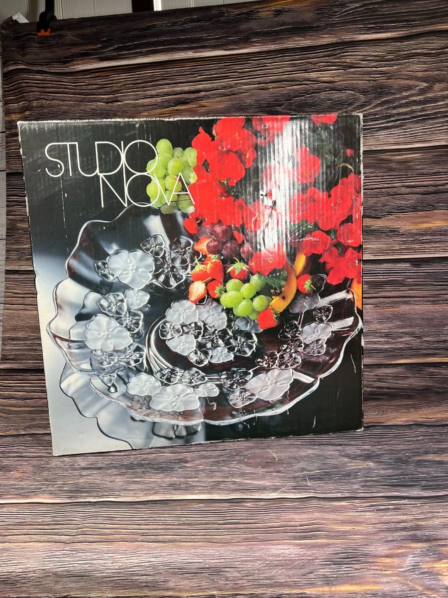 Retro Studio Nova Spring Glow Hostess Clear Glass Serving Platter, there is no significant damage to the glass platter and is in good useable condition. Comes with original box, check pictures for more details and for sizing.