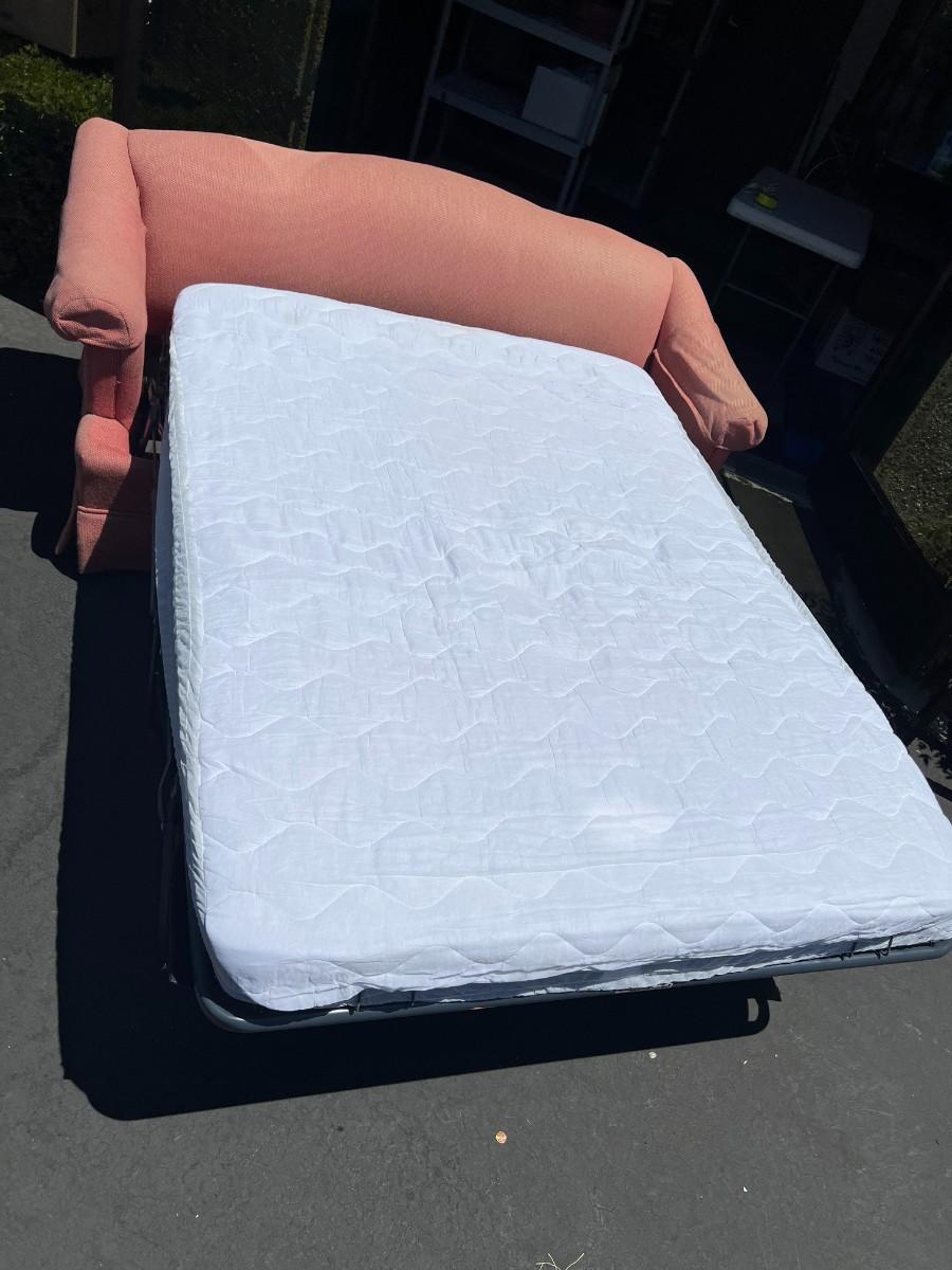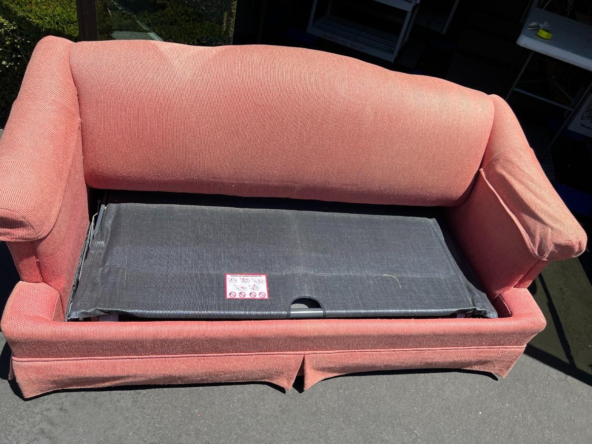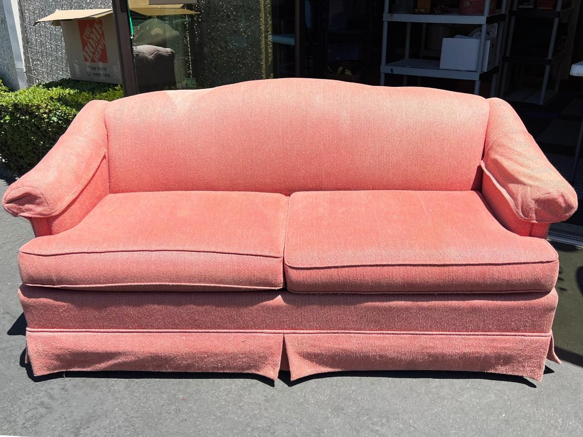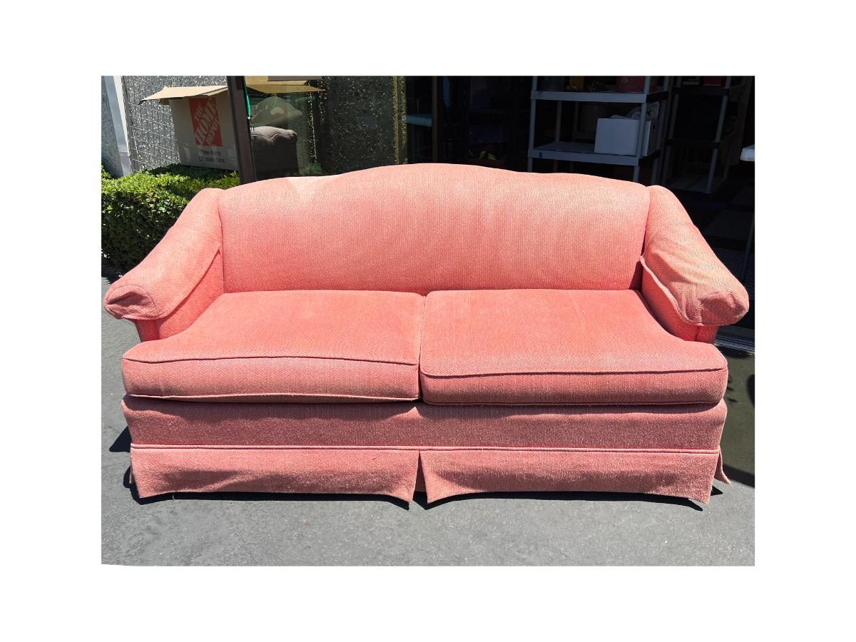 Retro Style Pink Coral Colored Loveseat Pull Out Mattress Couch