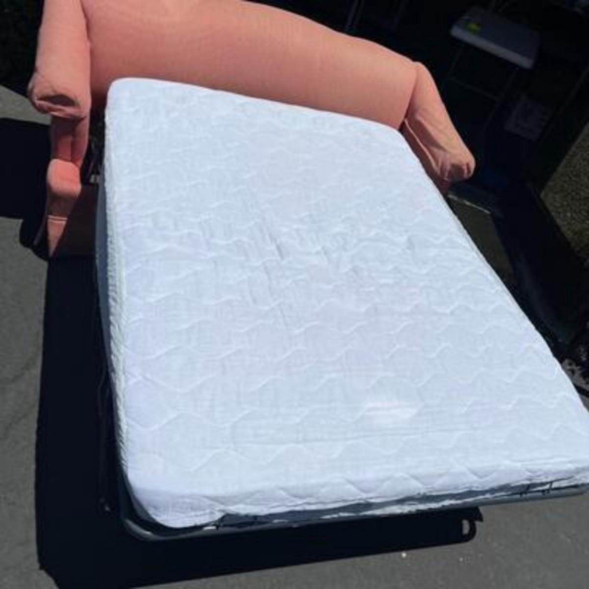 Retro Style Pink Coral Colored Loveseat Pull Out Mattress Couch