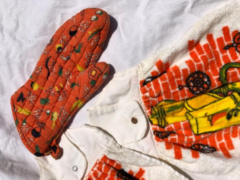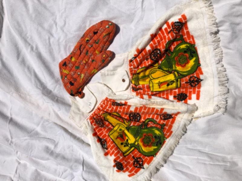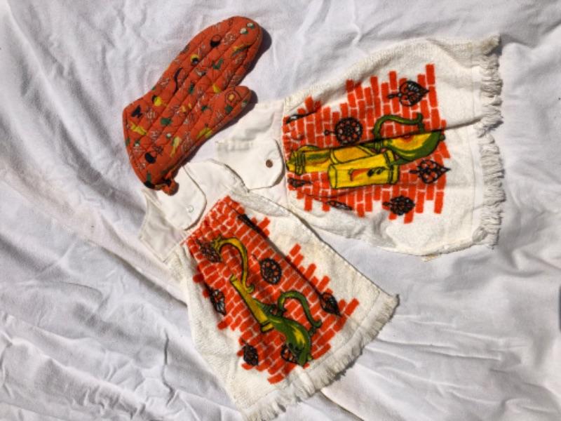 Retro Tea towels & oven mitt homemade loops for hanging