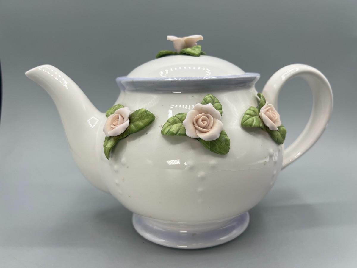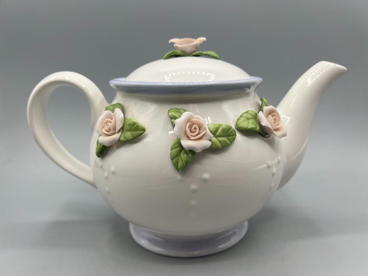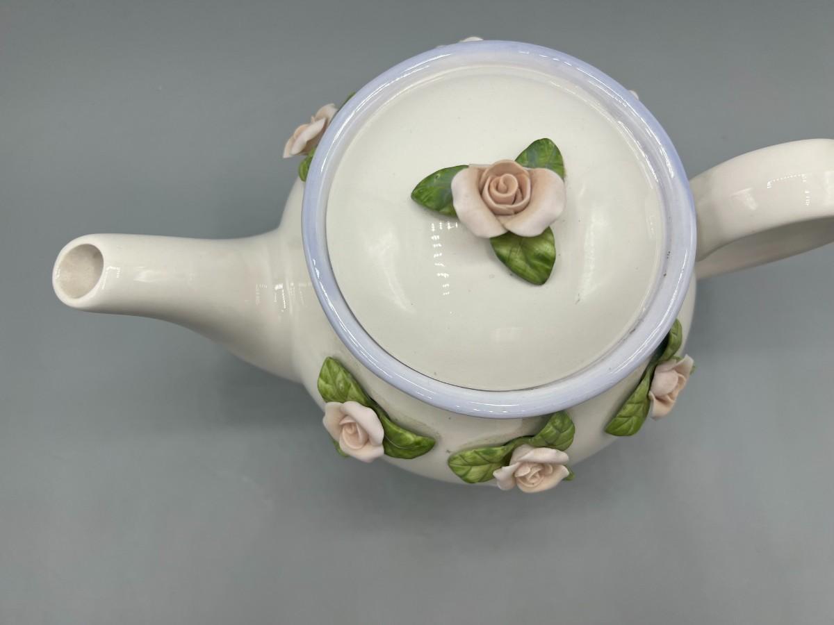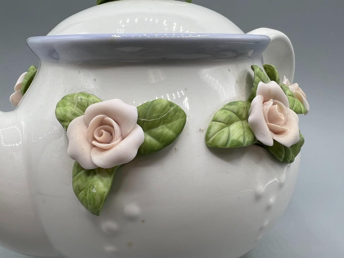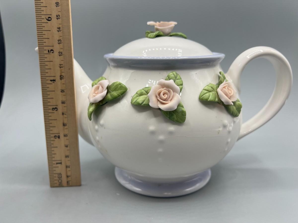 Retro Teleflora Pink Rose Ceramic Teapot