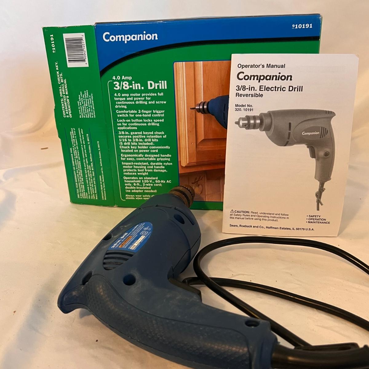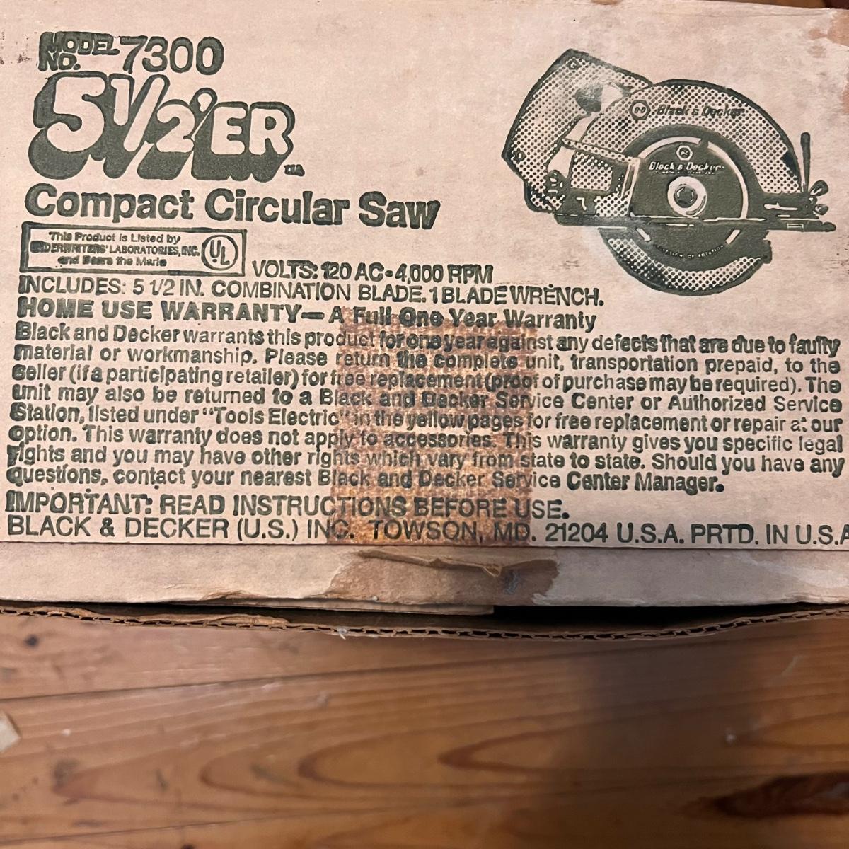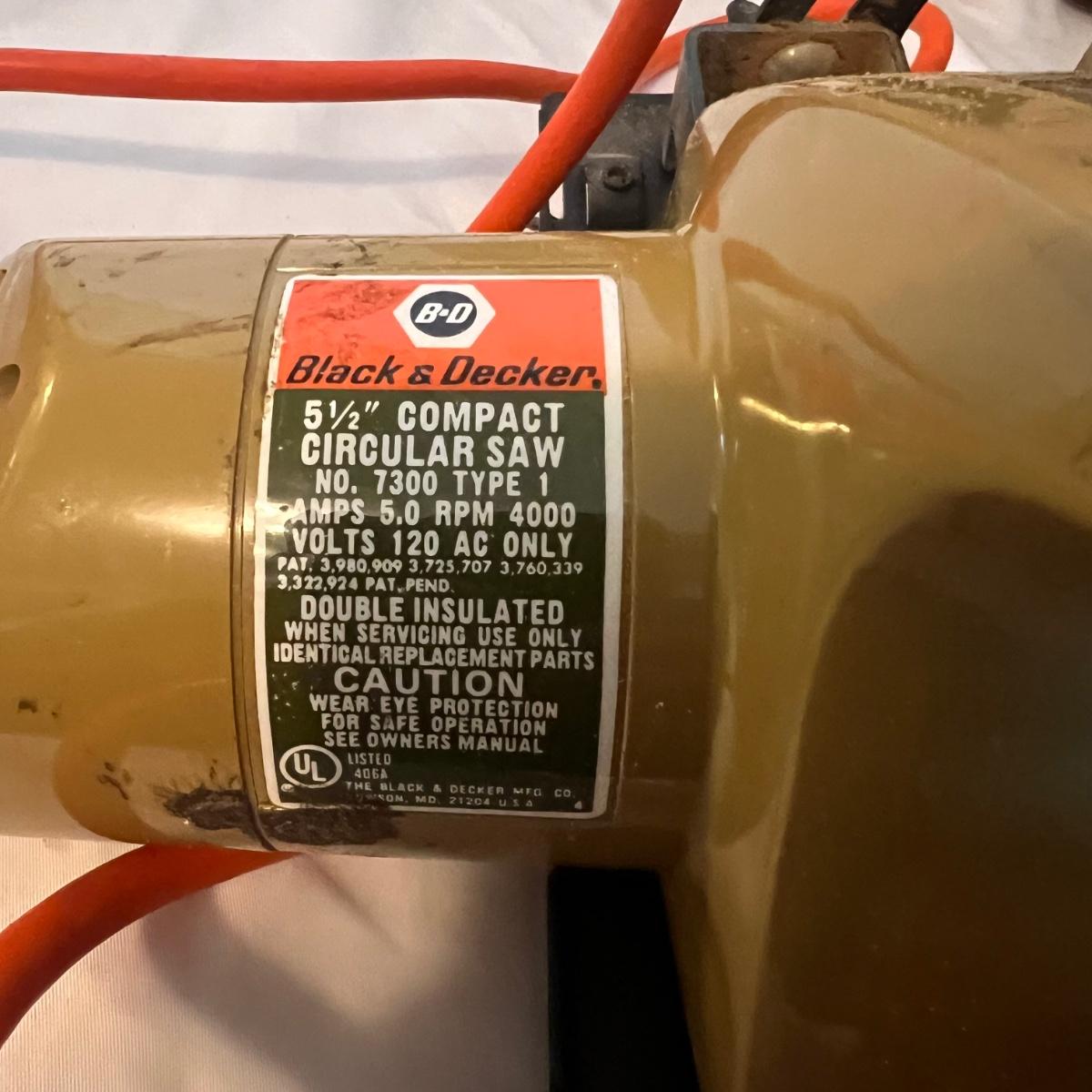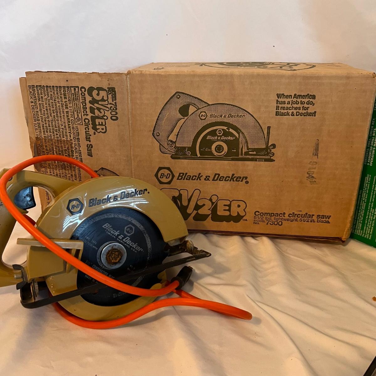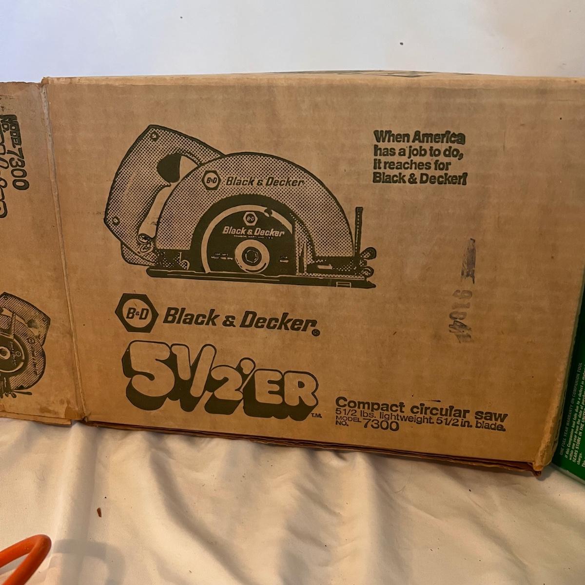 Two retro Black & Decker saws both powered on when plugged in as does the newer Companion drill. Note that the Jig Saw does not have its box. The multi tester is battery operated and untested (some corrosion in battery compartment, see pics).