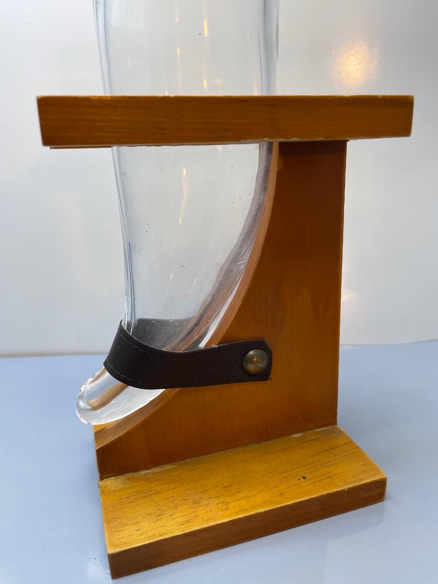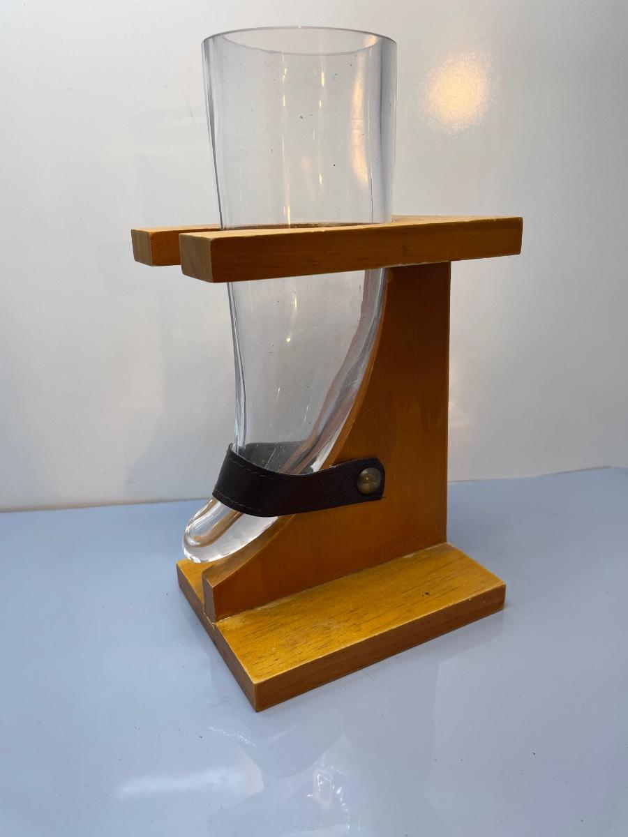 Medieval Viking Style Glass Beer Drinking Horn & Wood Display Stand or could be used as a vase