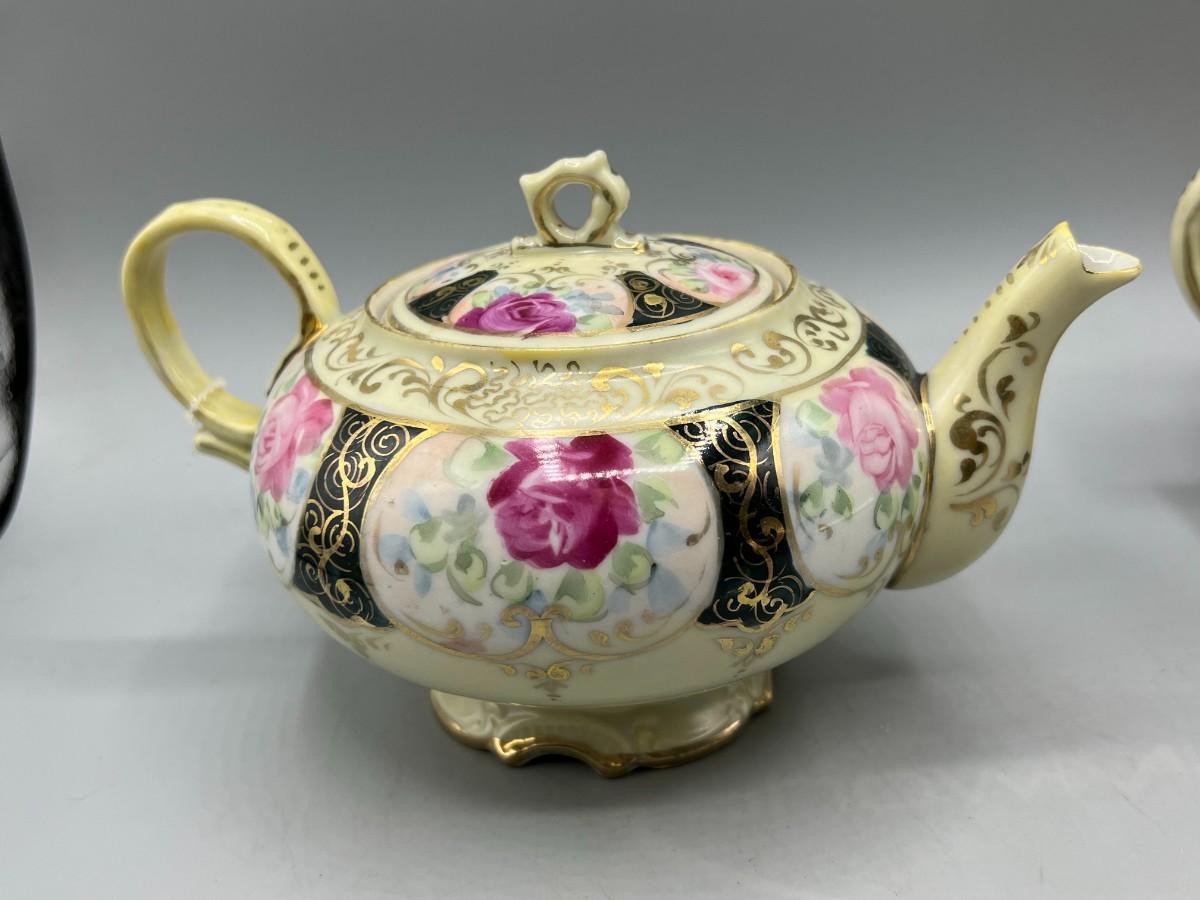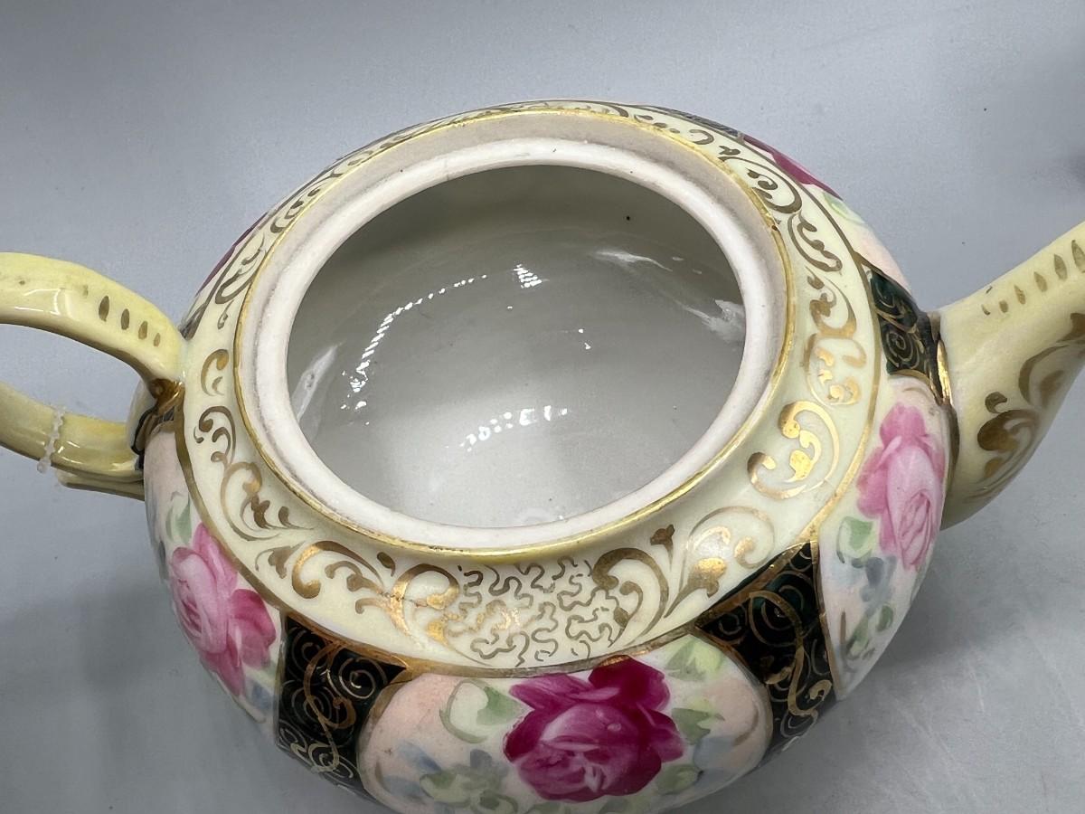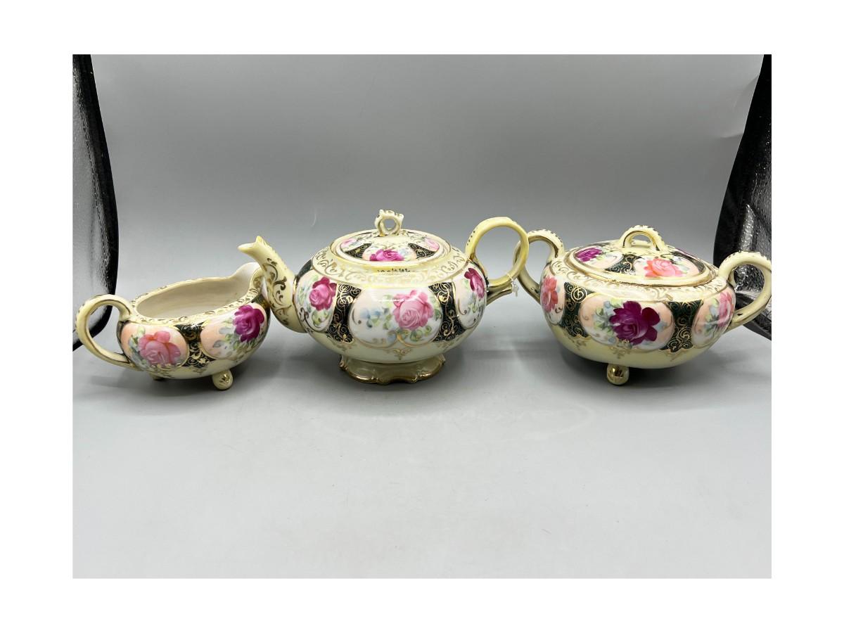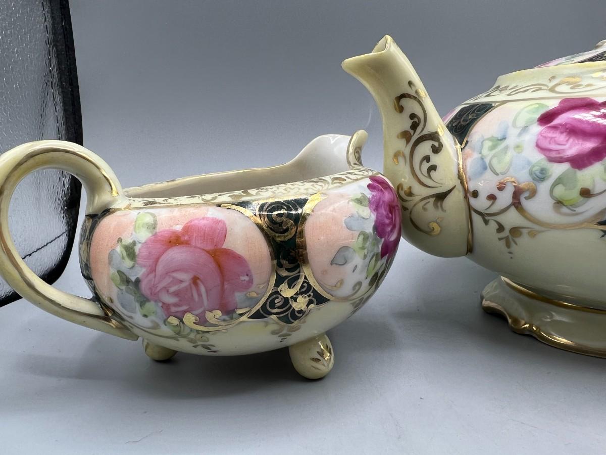 Retro Victorian Style Gold Trim Ornate Rose Pattern Ceramic Tea Serving Set