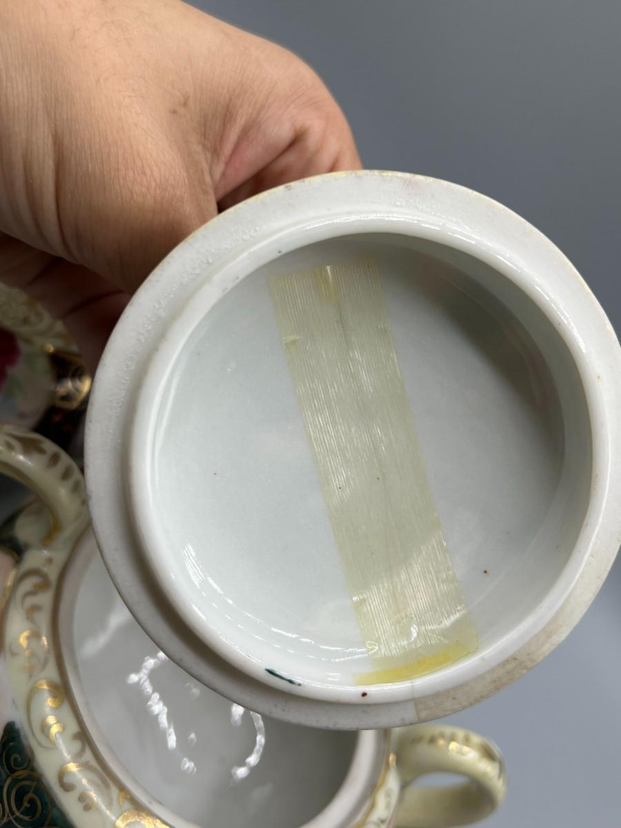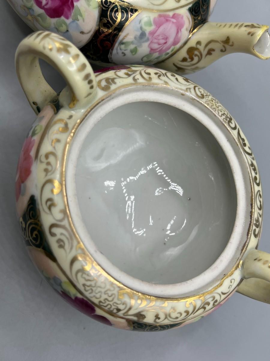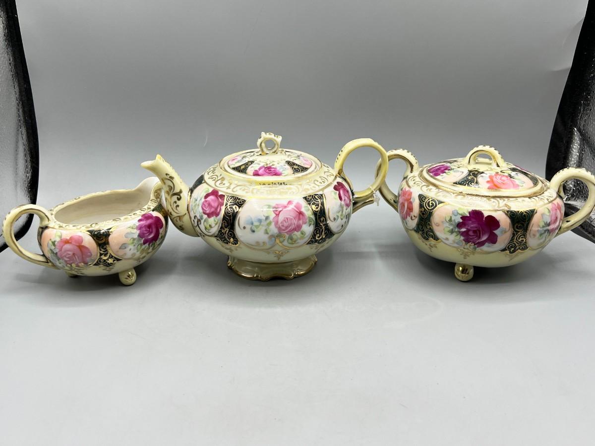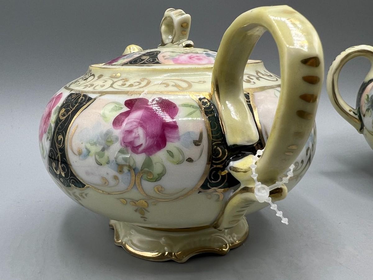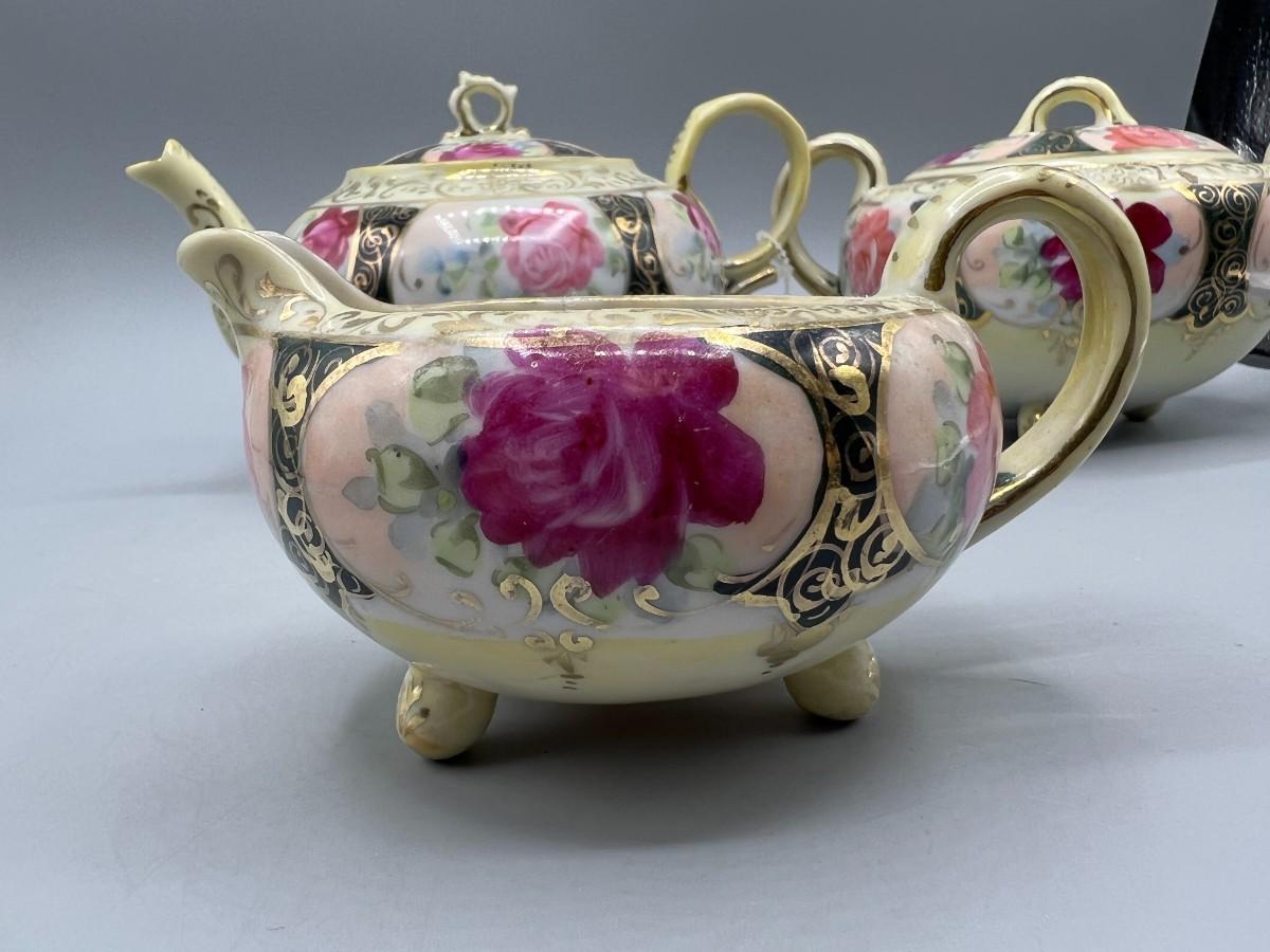 Retro Victorian Style Gold Trim Ornate Rose Pattern Ceramic Tea Serving Set