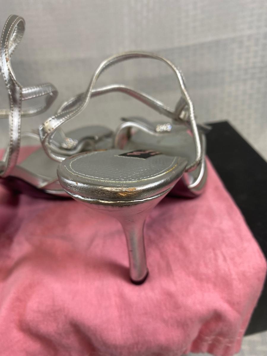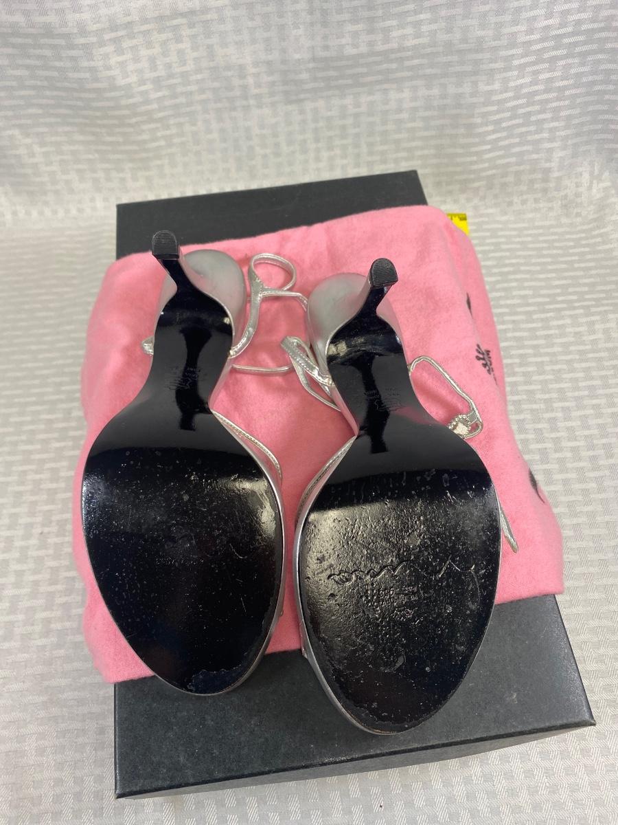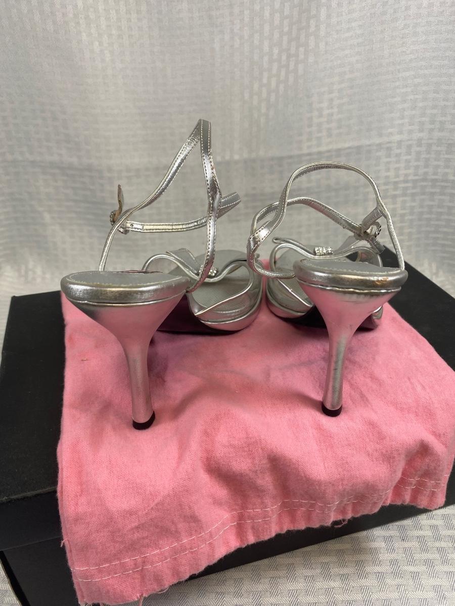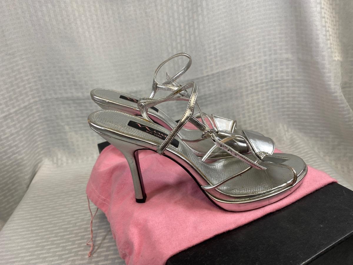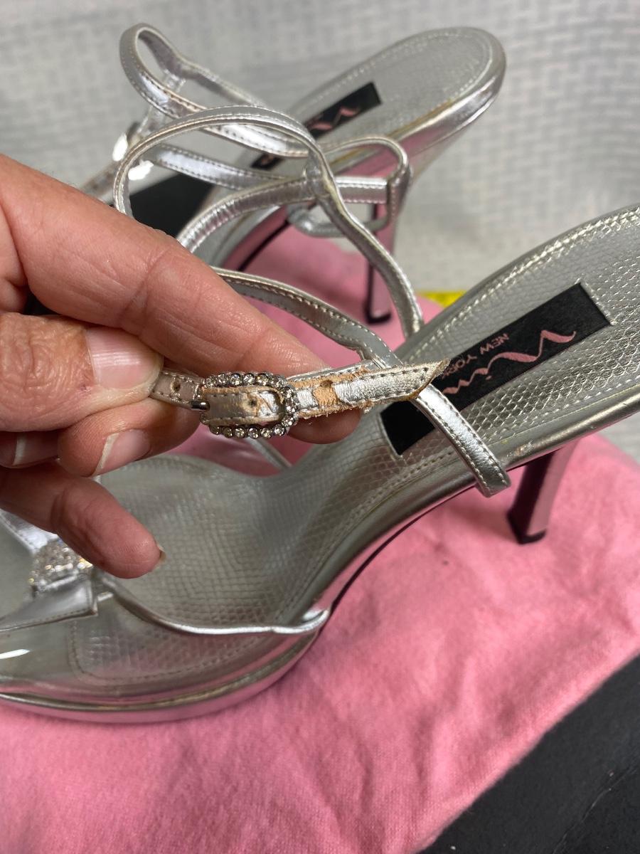 Retro Vintage Nina Strappy Silver Rhinestone Bow Heels Pumps. In good used condition. Size 8.5. Come in original felt pink bag.