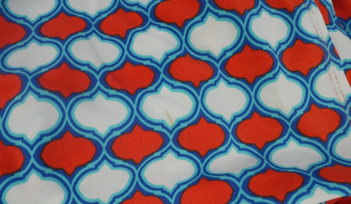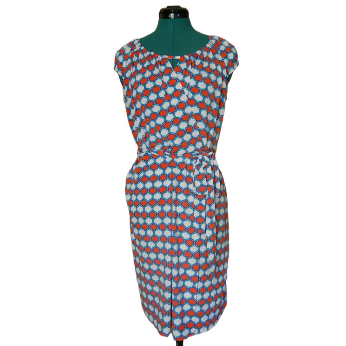 Retro, vintage style orange and blue dress in women's size M. Maker is Laundry by Design, great condition - very small spot in front. Adjustable waist tie for the perfect fit!