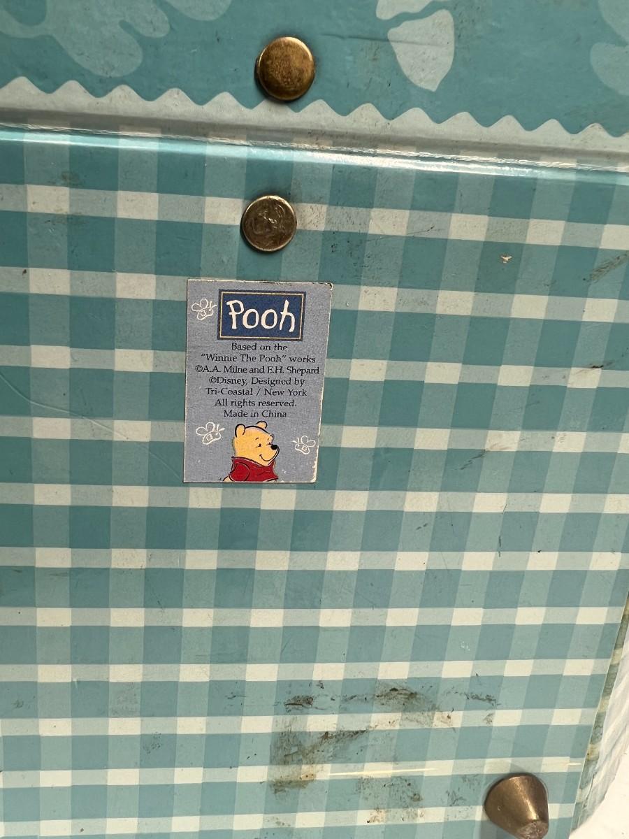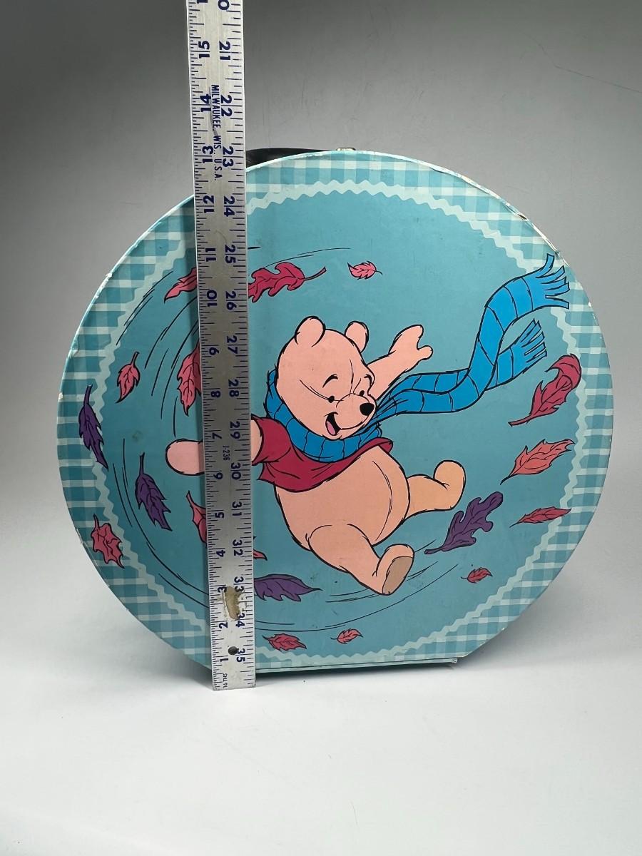 Retro Winnie the Pooh Hat Box Train Case with Handle. Some fade and wear from age. About 13" size.