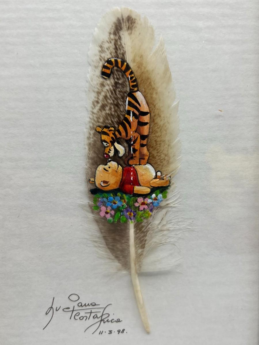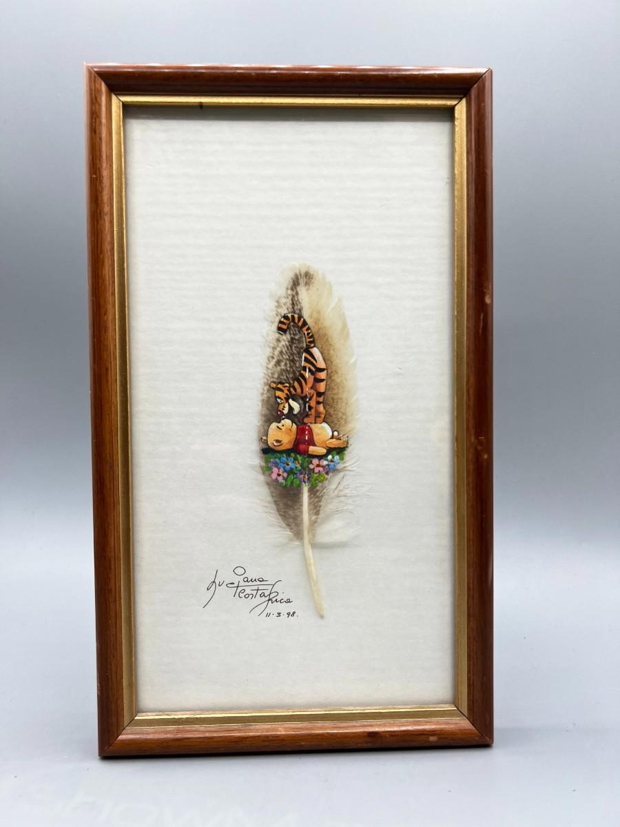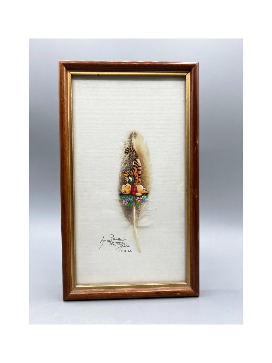 Retro Winnie the Pooh & Tigger Painted Feather Collectible Framed Art