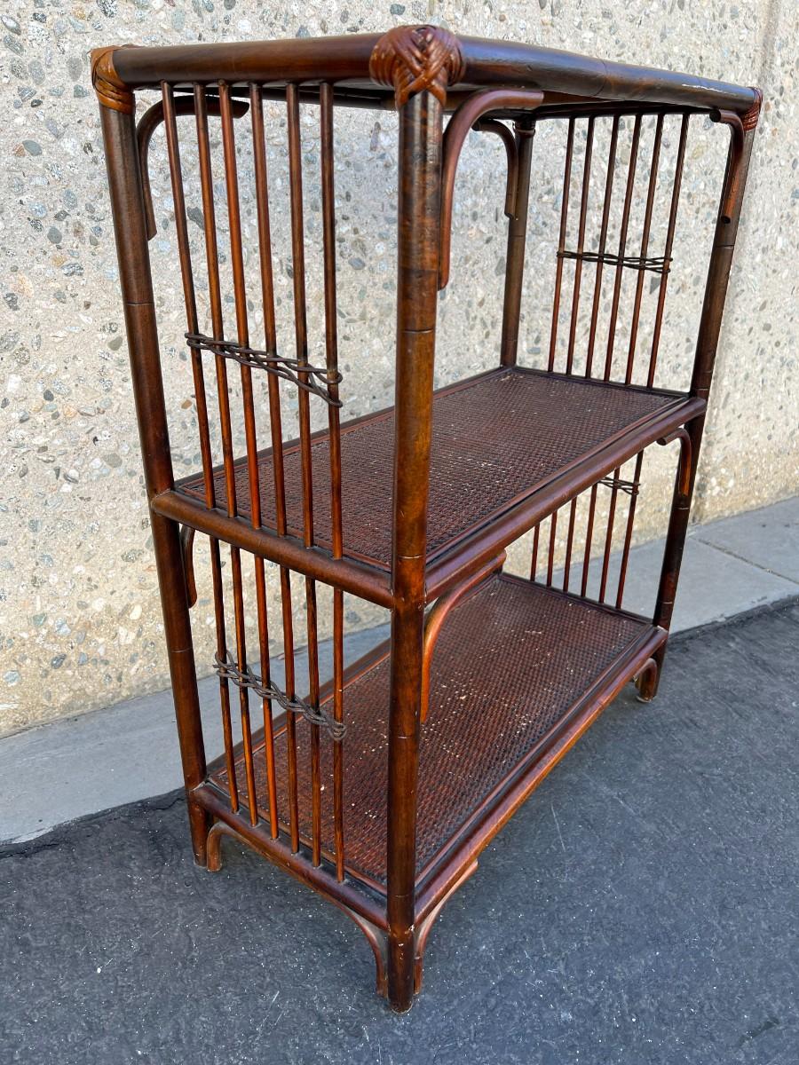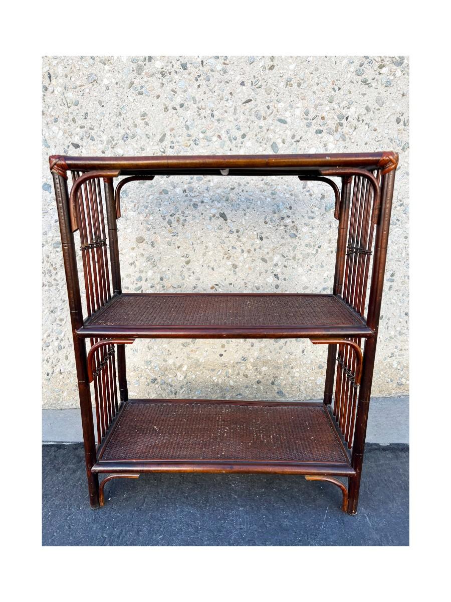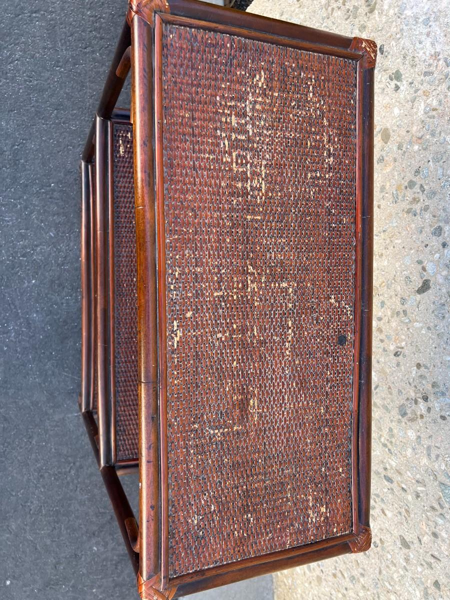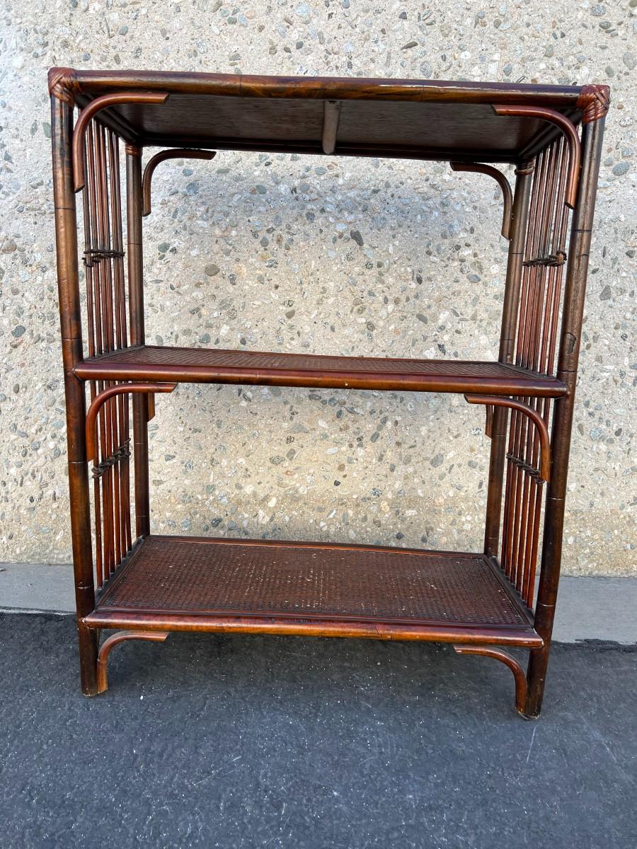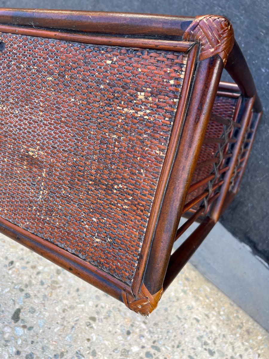 Retro Wood Bamboo Wicker Shelf Cabinet Organizer