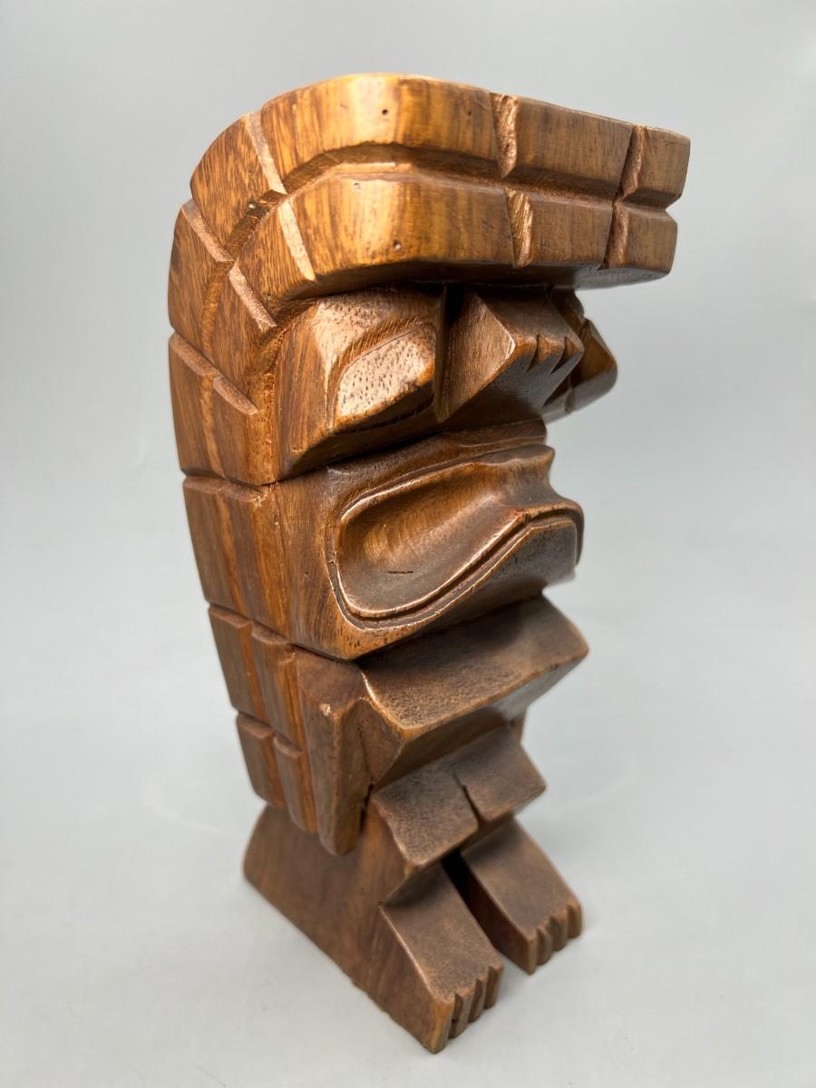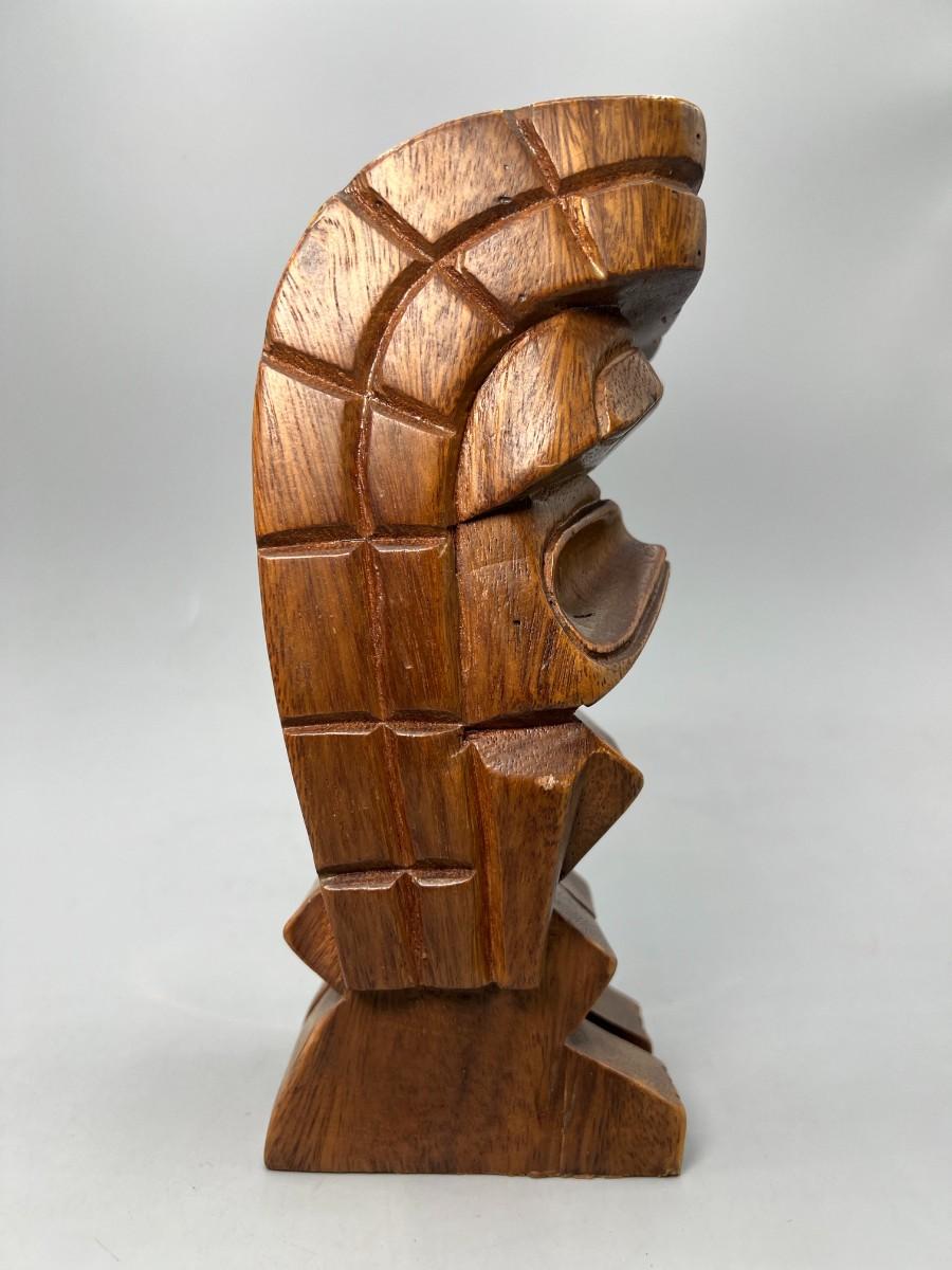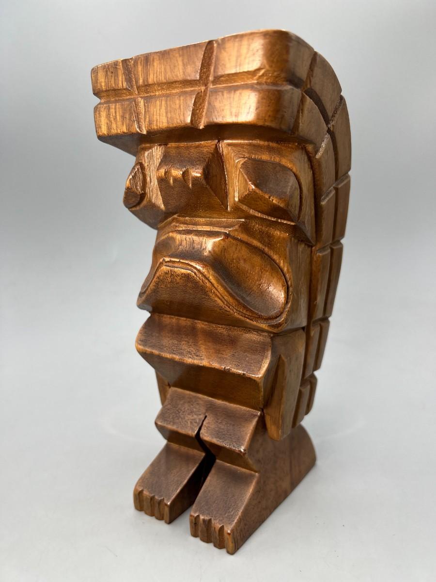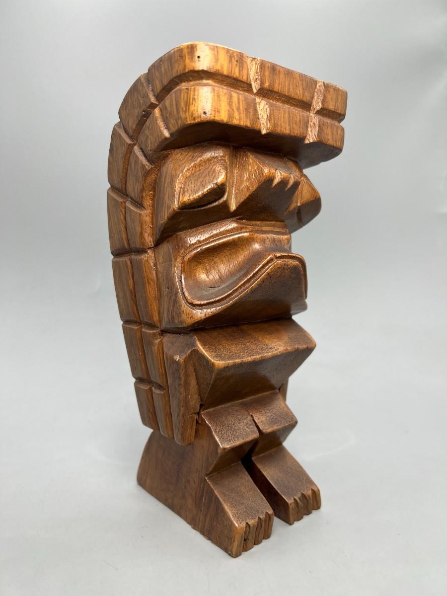 Retro Wooden Carved Hawaiian Tiki Figurine Statue