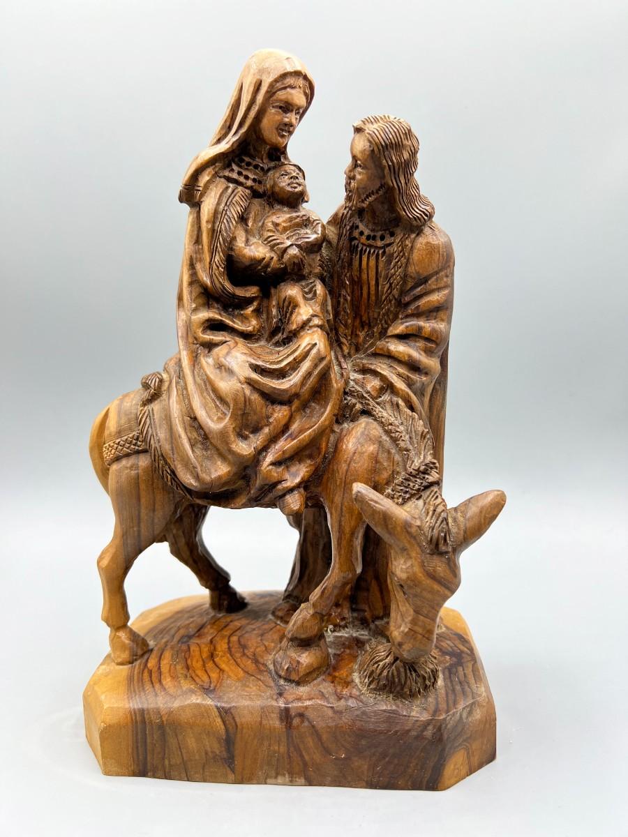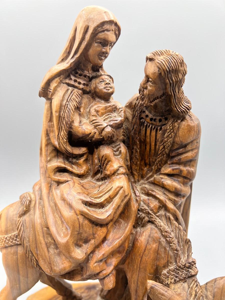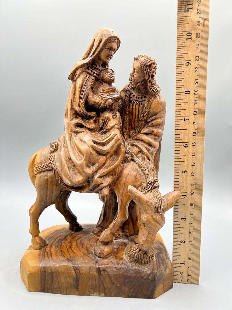 Retro Wooden Mary Joseph Baby Jesus Religious Statue Figurine