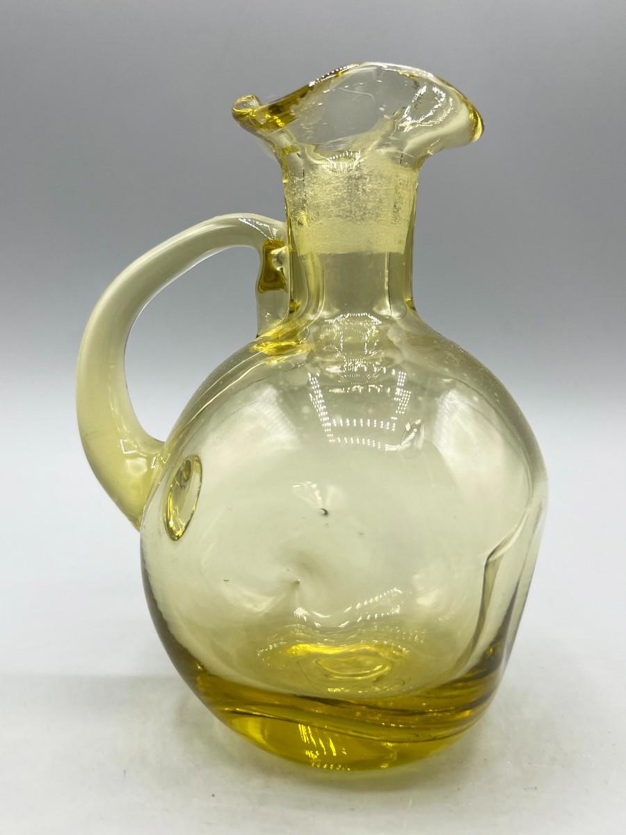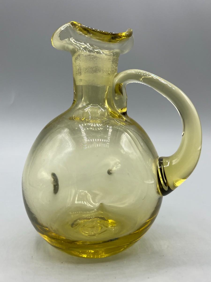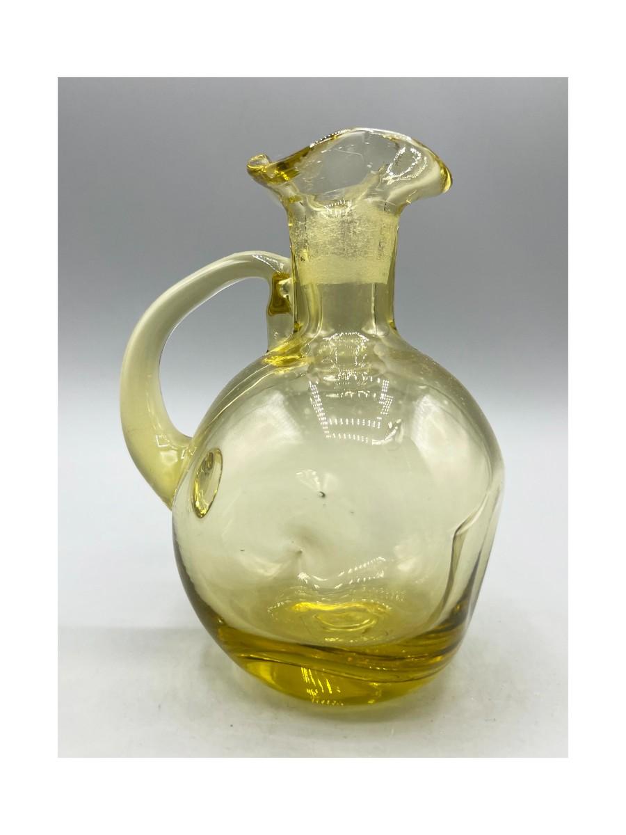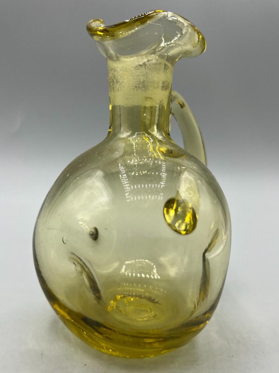 Retro Yellow Clear Glass Round Cruet Bottle Pitcher