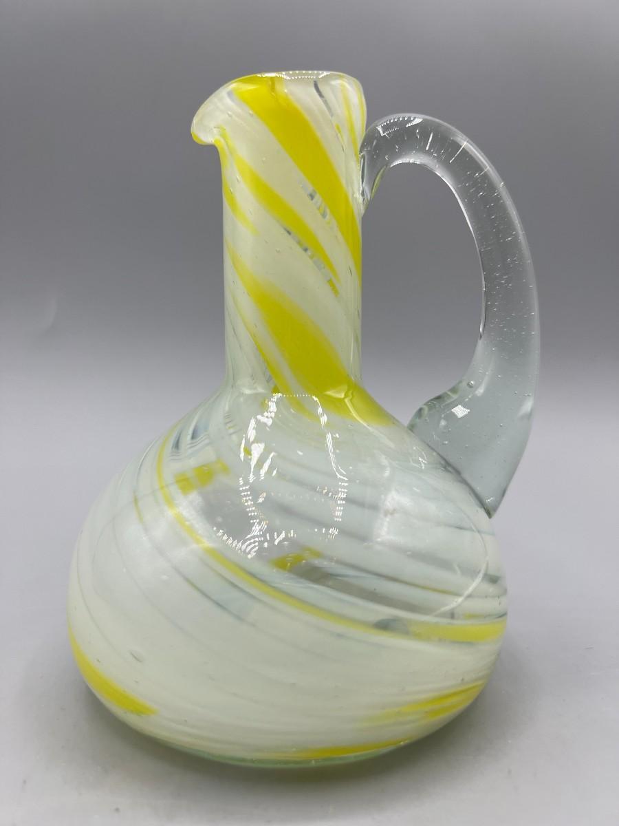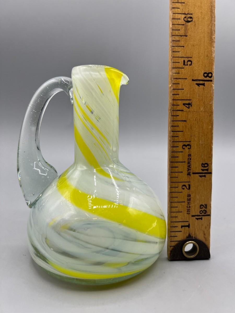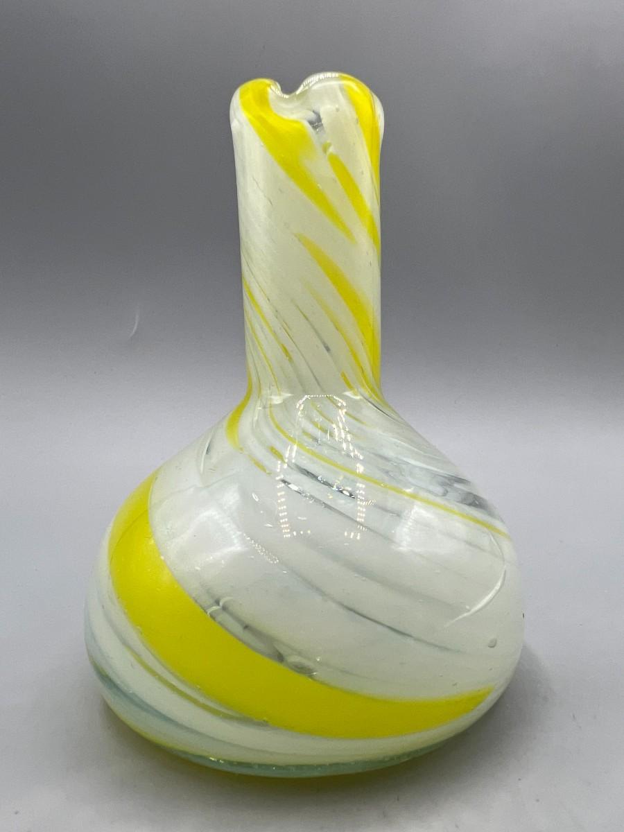 Retro Yellow & White Swirled Hand Blown Cruet Bottle