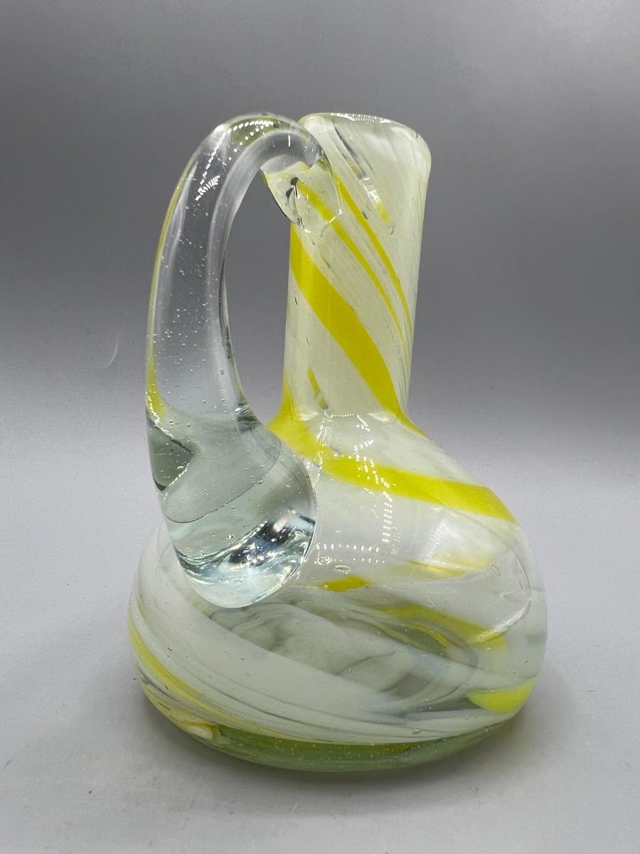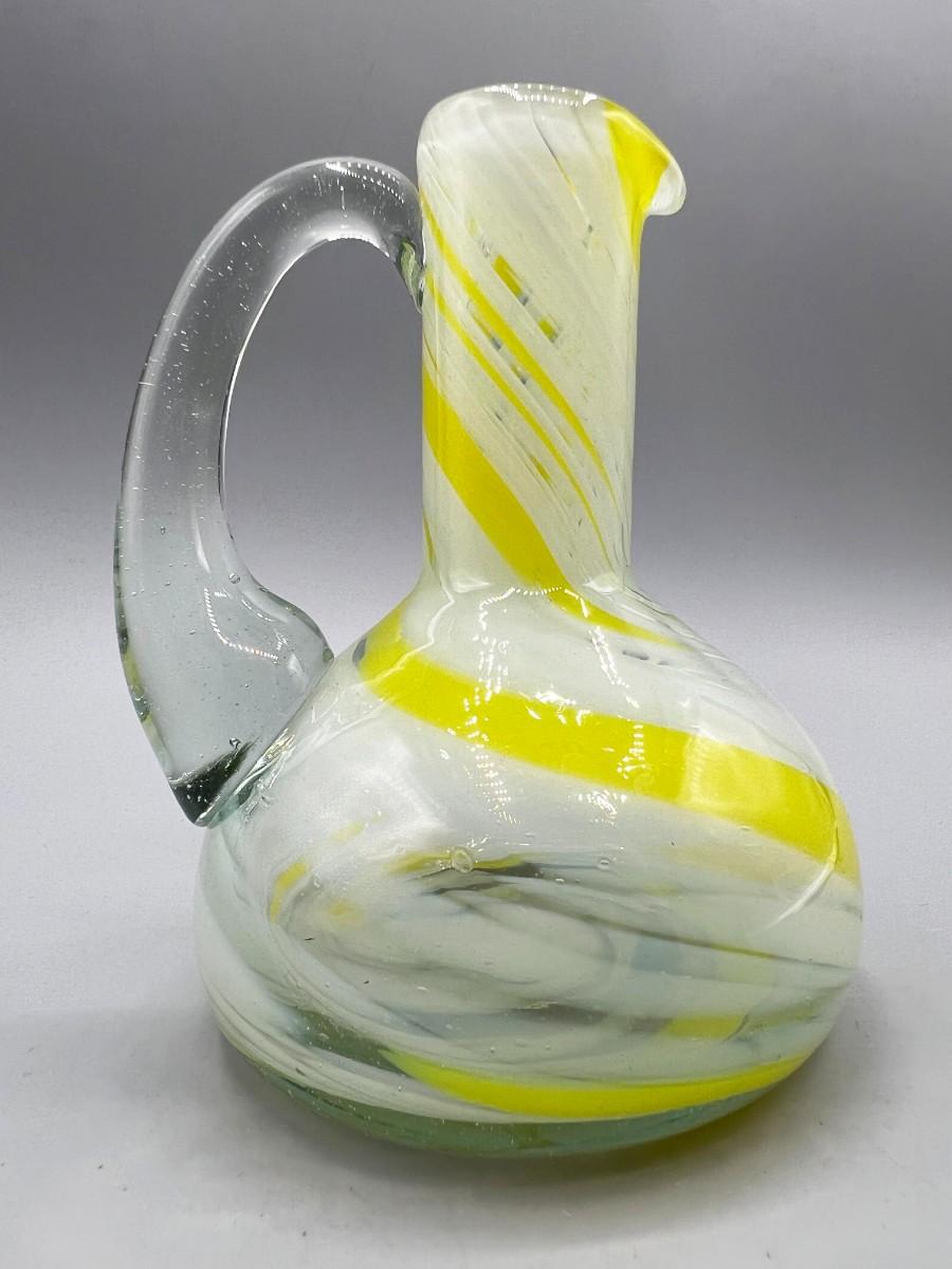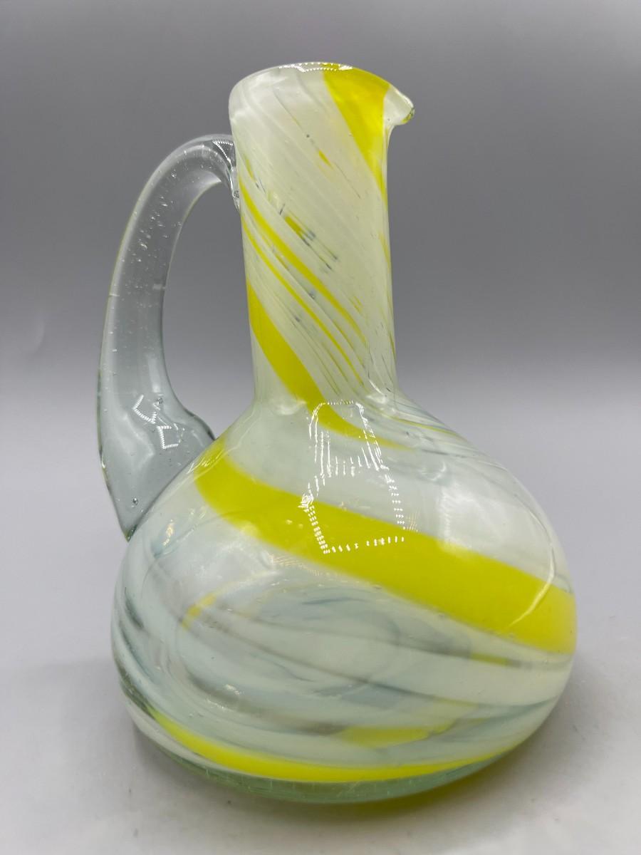 Retro Yellow & White Swirled Hand Blown Cruet Bottle