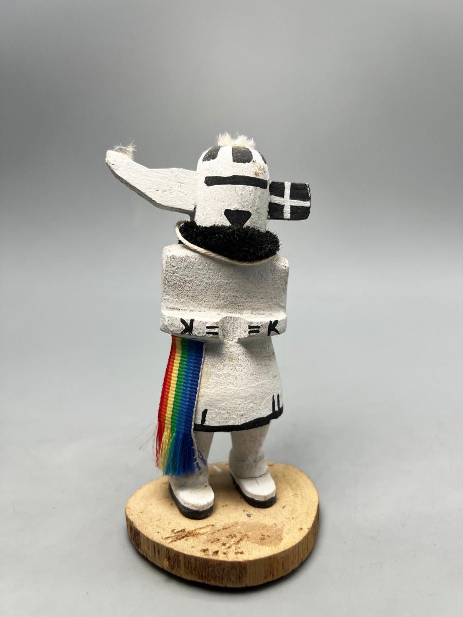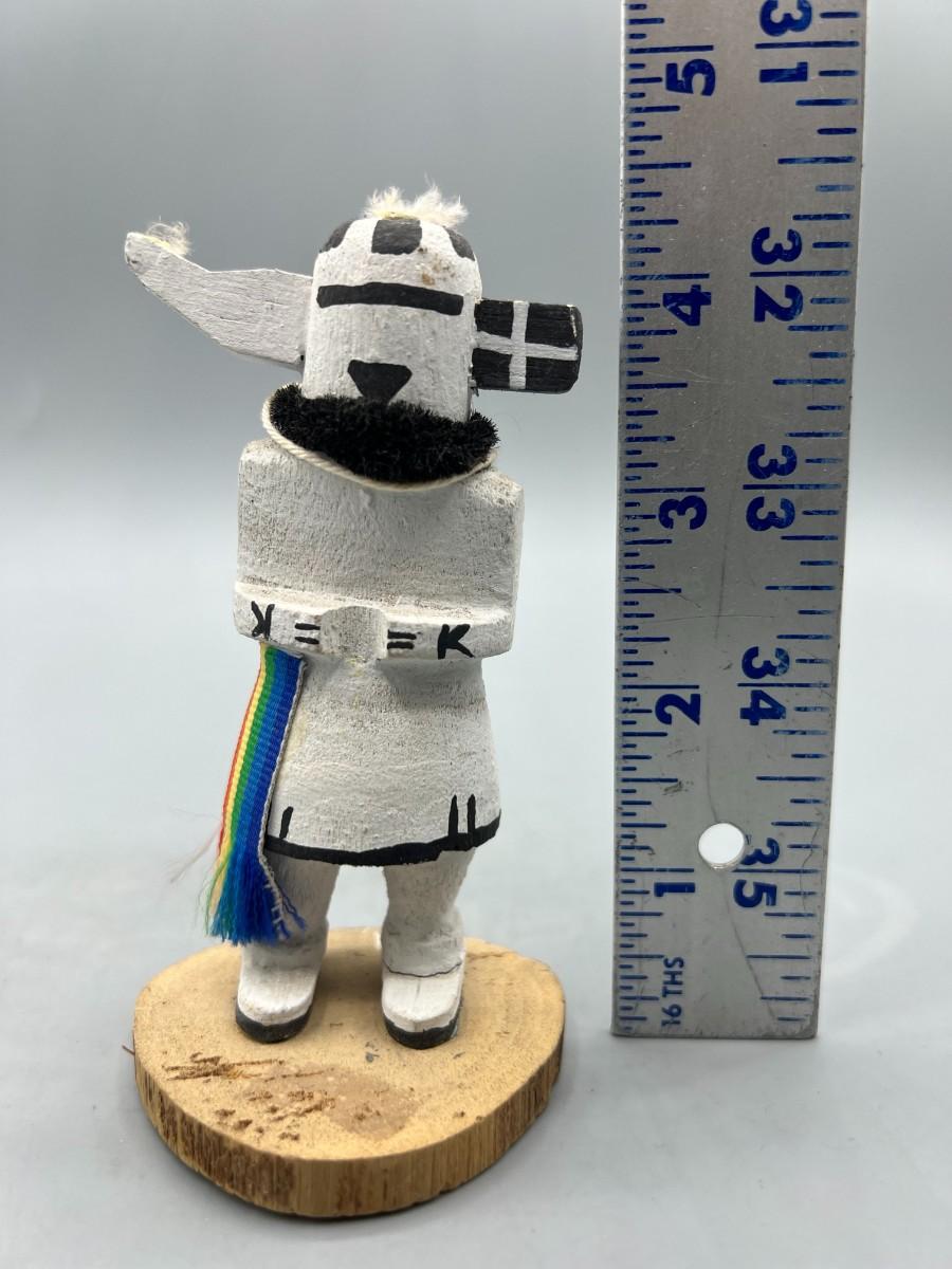 There is no significant damage to the kachina doll and is in overall good collectible or displayable condition. Check pictures for more details and for sizing.