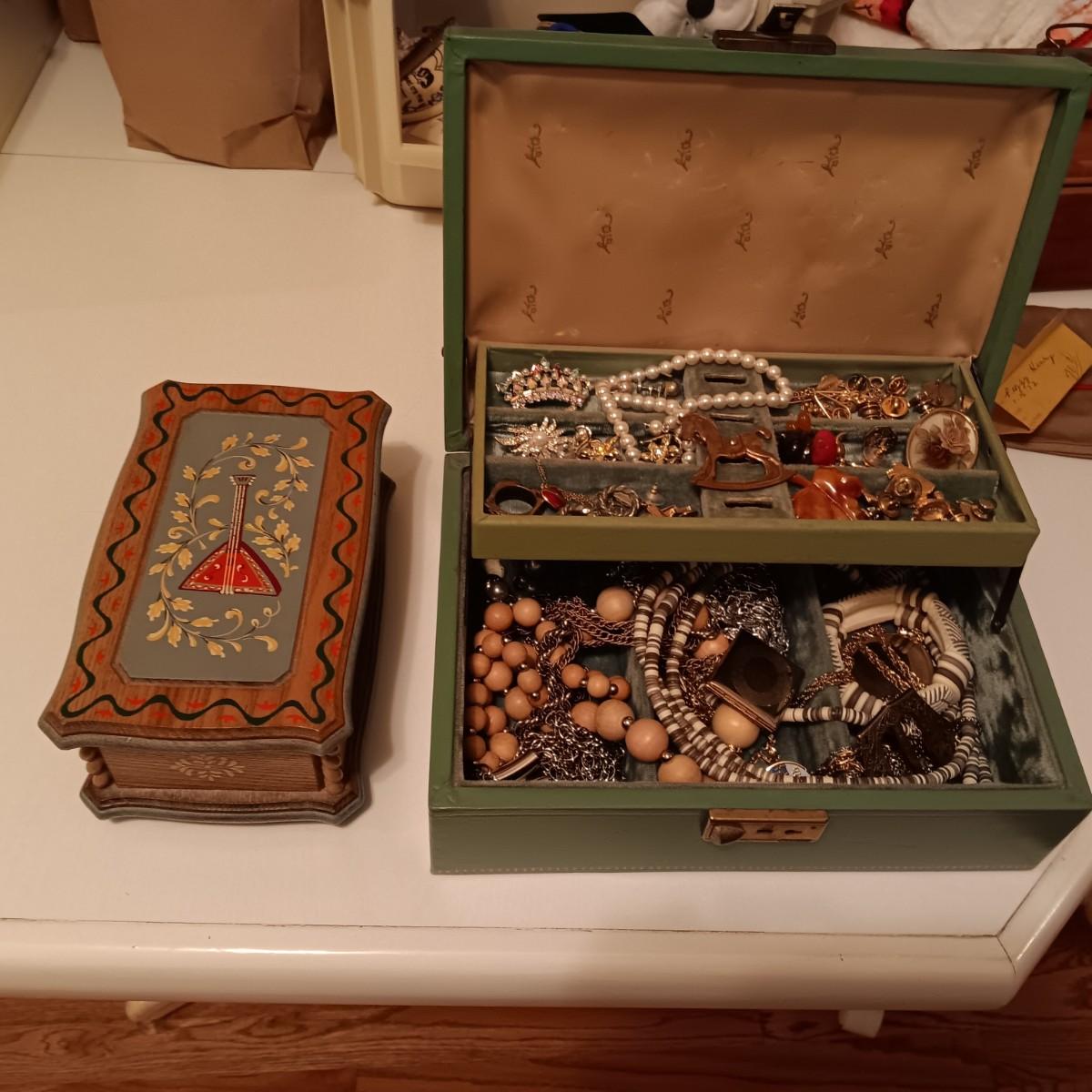 REUGE MUSICAL JEWELRY BOX AND A COLLECTION OF COSTUME JEWELRY