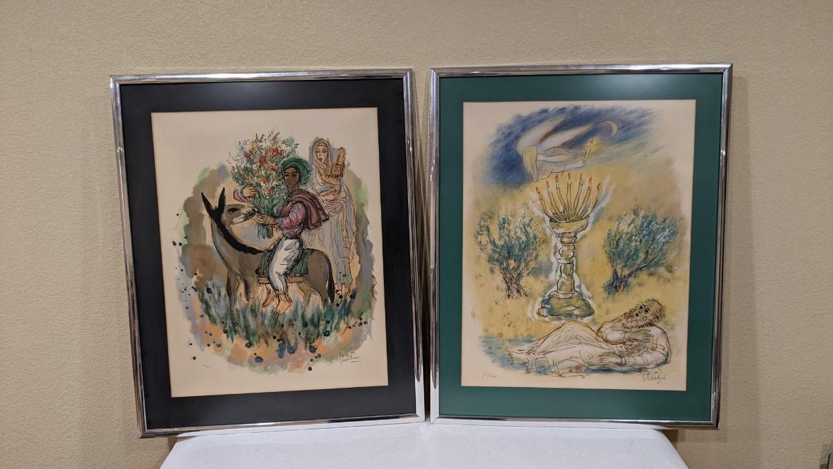 2ea, respectively titled 'The Prophet' and 'Zecariah'- approx. 25" x 31" outer dimension. Both in excellent condition with provenance for art piece materials and for purchase from 1973.