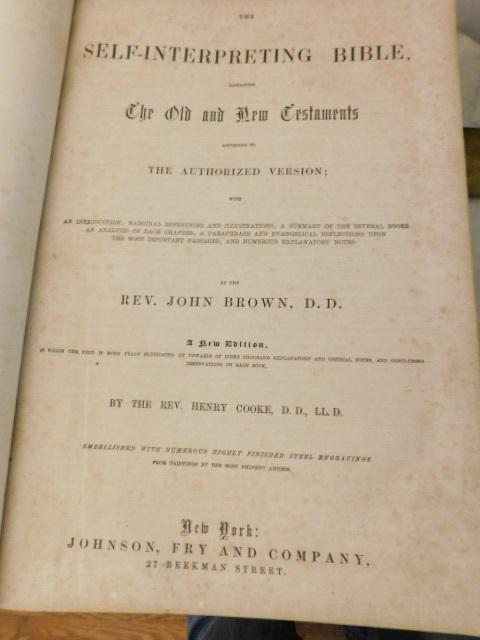 Rev. John Brown's Self-Interpreting Bible Published by Johnson, Fry and Co. with Brass Cover Clips