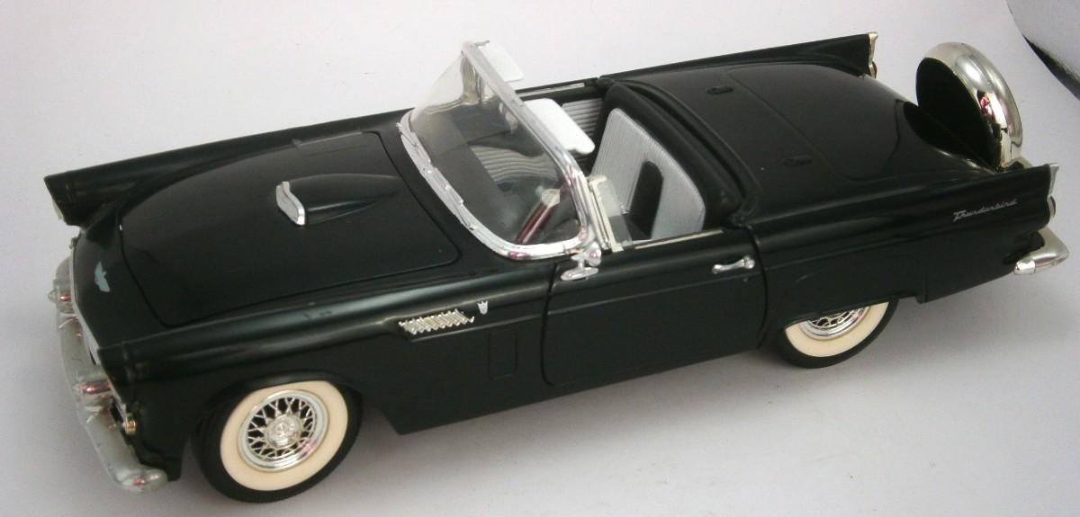 Revell 1956 Ford T-Bird Black 1/18 Scale Diecast Model, 10 1/2 in. long, die cast metal and plastic.