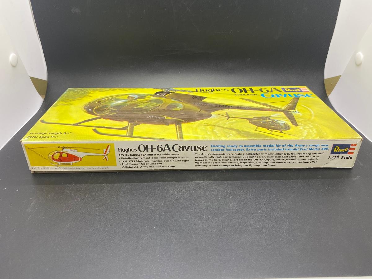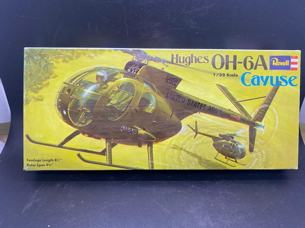 Vintage Revell Hughes OH-6A Cayuse scale model helicopter. 1/32 scale. Kit looks to be complete, pices have not been separated from what I can tell.
