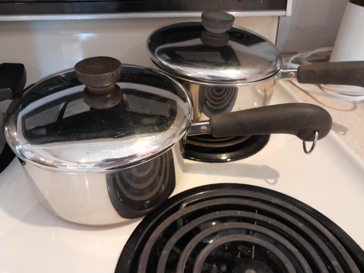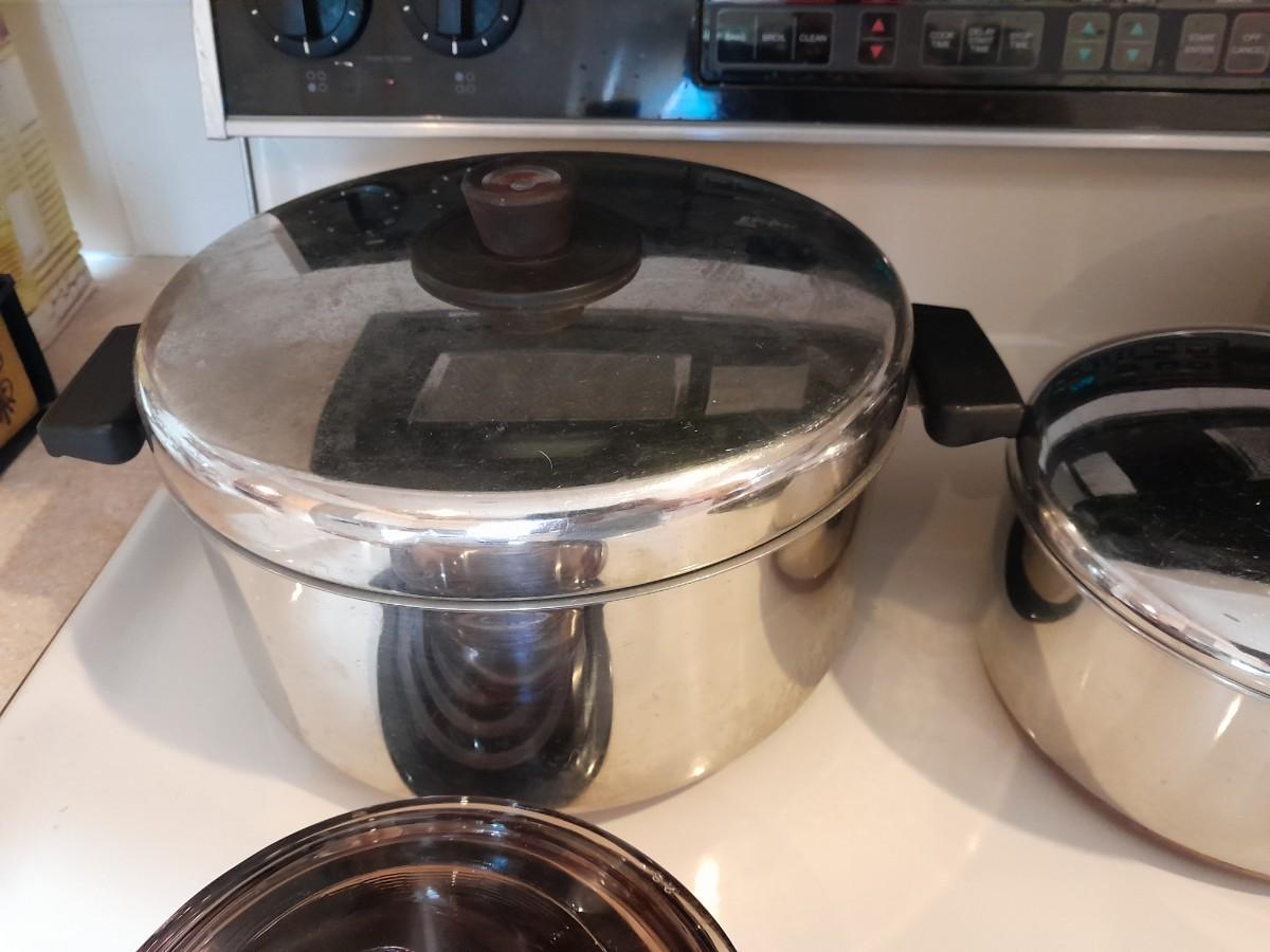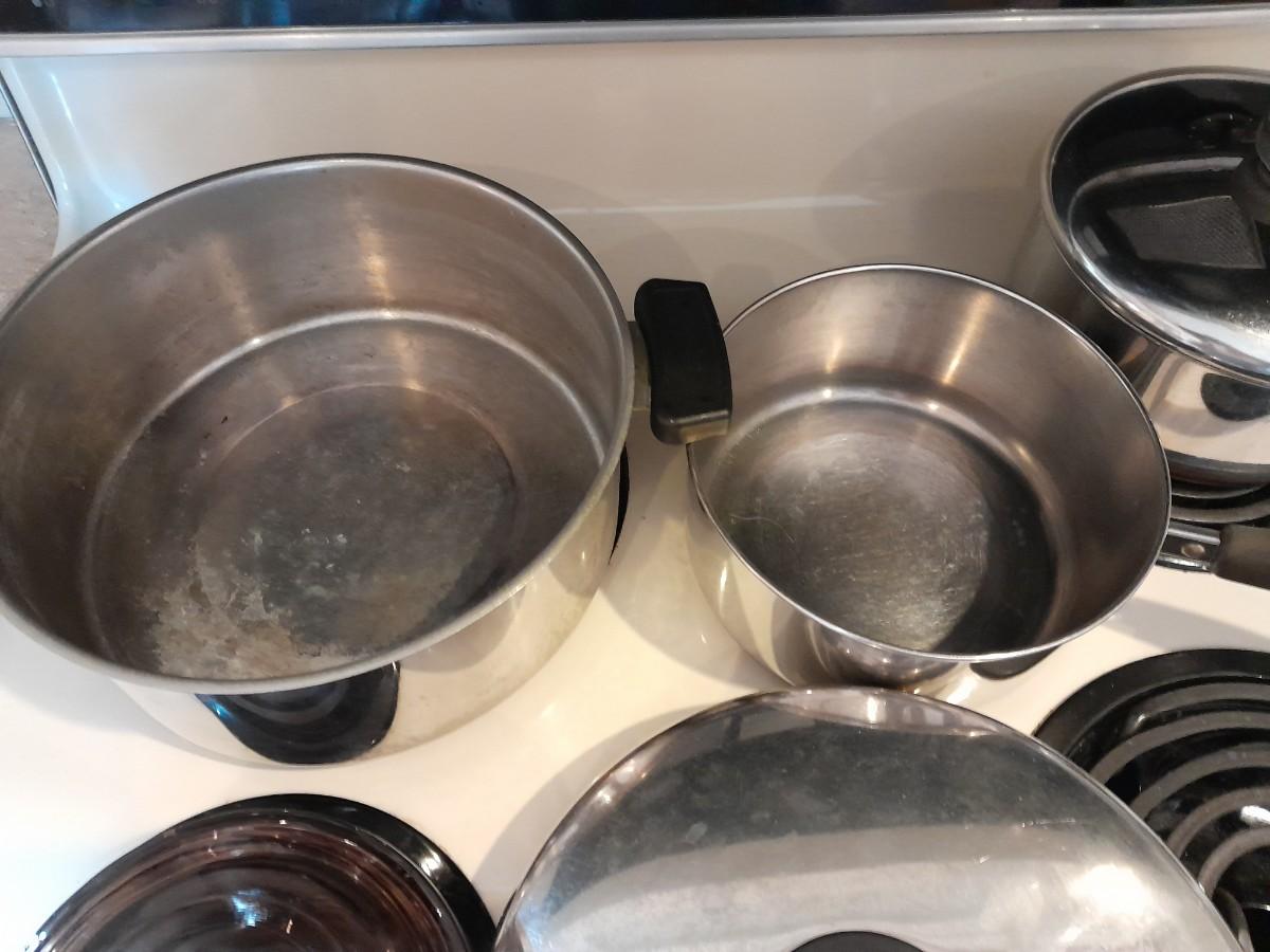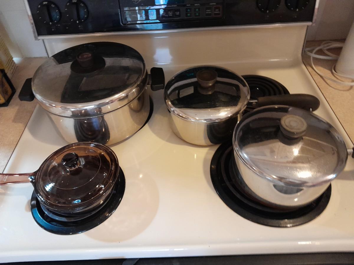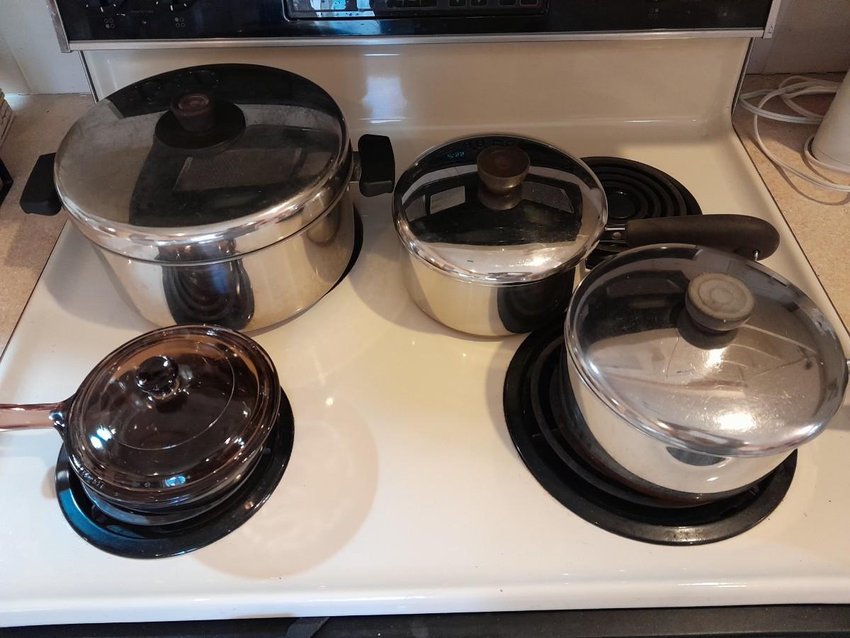 STAINLESS STEEL POTS WITH LIDS AND VISIONWARE PAN