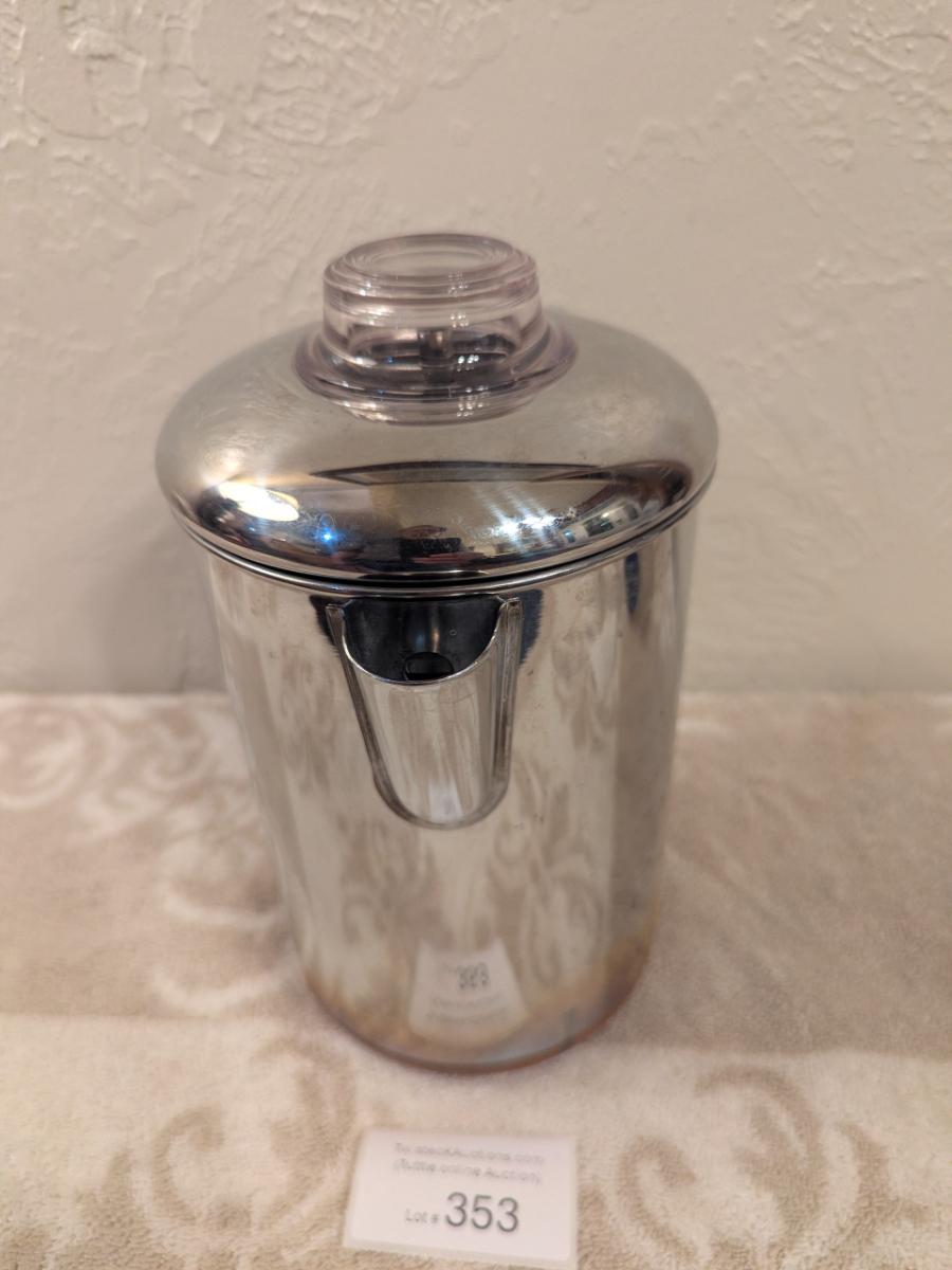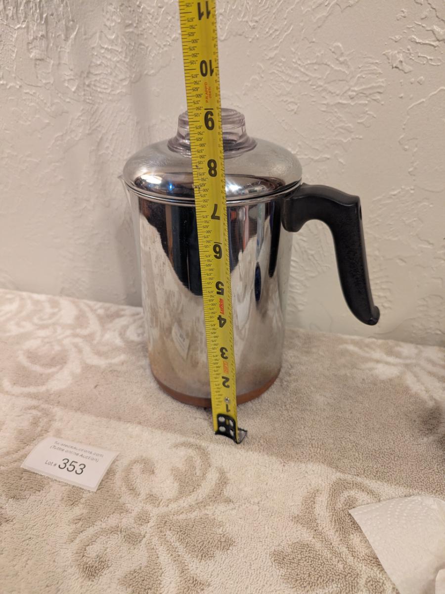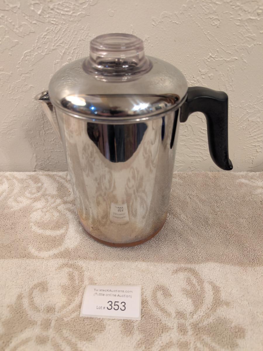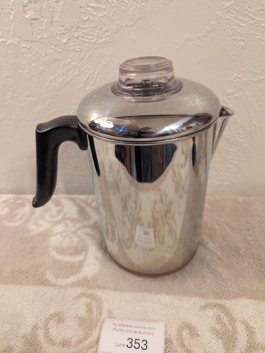 Revere Ware copper-clad stainless steel stovetop coffee percolator.