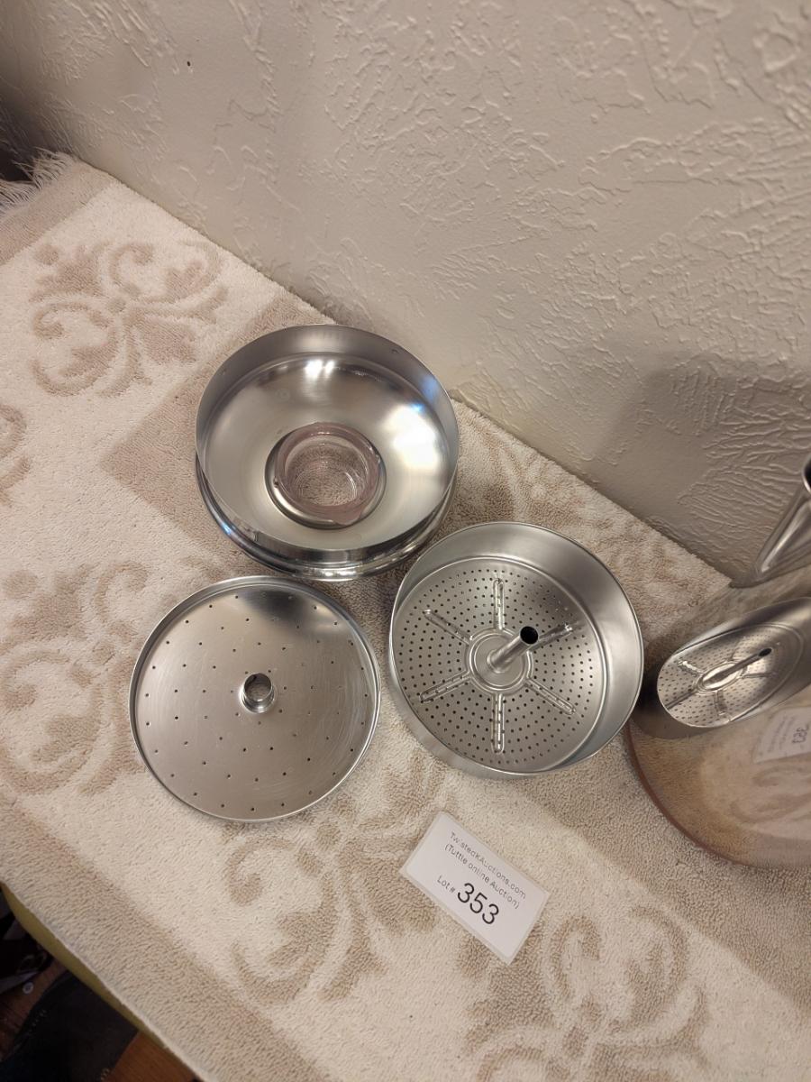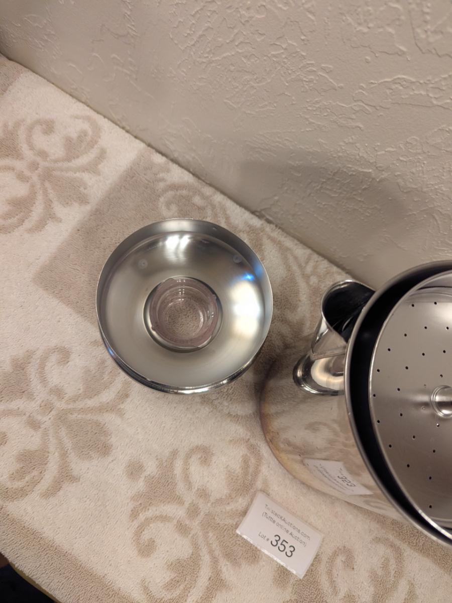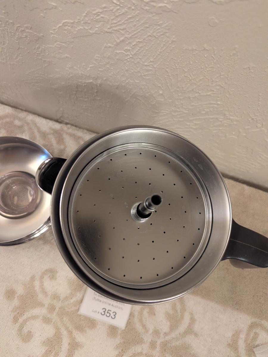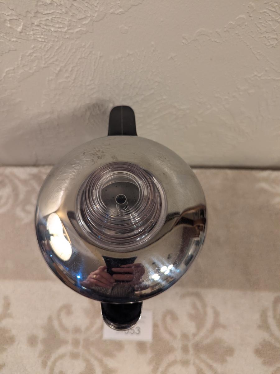 Revere Ware copper-clad stainless steel stovetop coffee percolator.