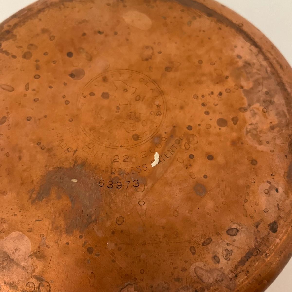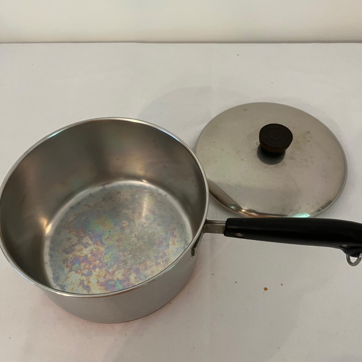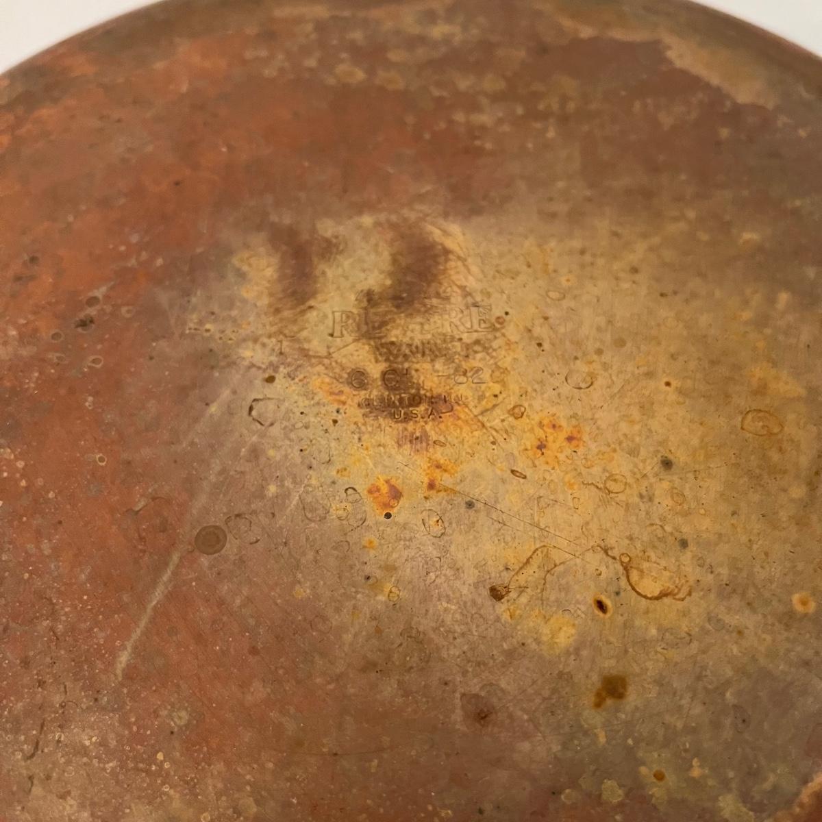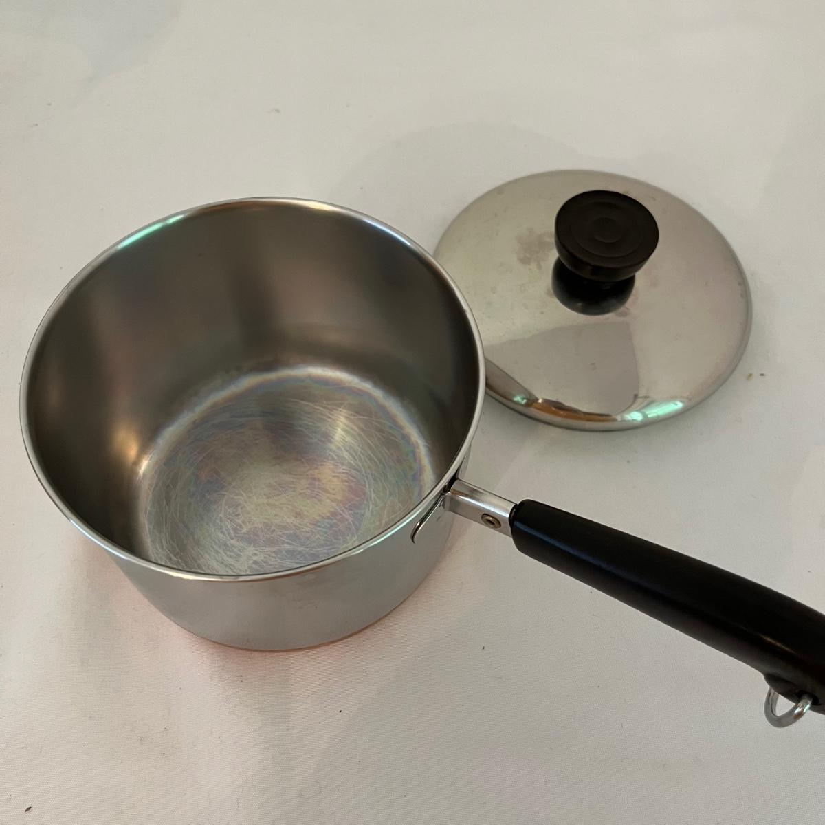 This lot includes 8 Revere Ware pots, 2 Revere Ware pans, lids, and more. The Revere kitchenware is stainless steel with a copper bottom. The pots all have small signs of wear on the bottom (see photos). The largest pot measures about 13” x 10” x 7”H. Look out for four Williams-Sonoma egg cup set to go with a pan elswhere in the sale. Shipping available. Shipping can be costly. We suggest contacting our preferred local shipping provider, Postage Express, with dimensions and getting an estimate before bidding: (828) 670-5501.