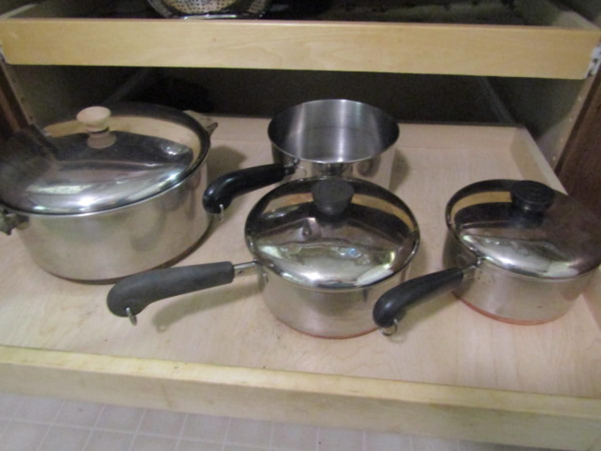 Revere Ware Pots- Assorted Sizes. In used condition- expect discoloration.