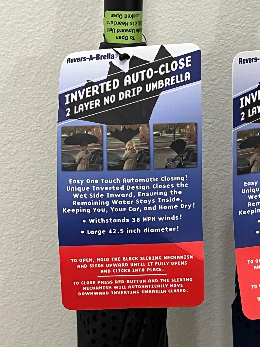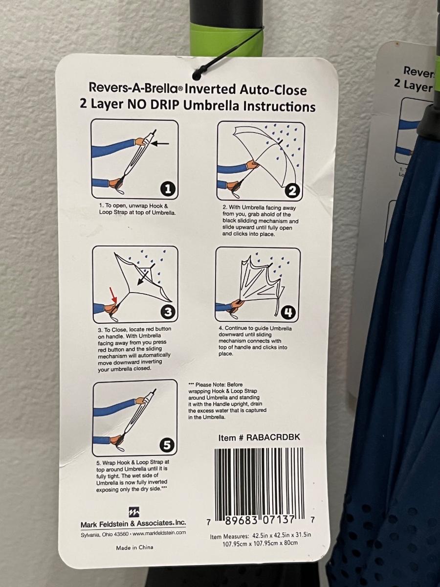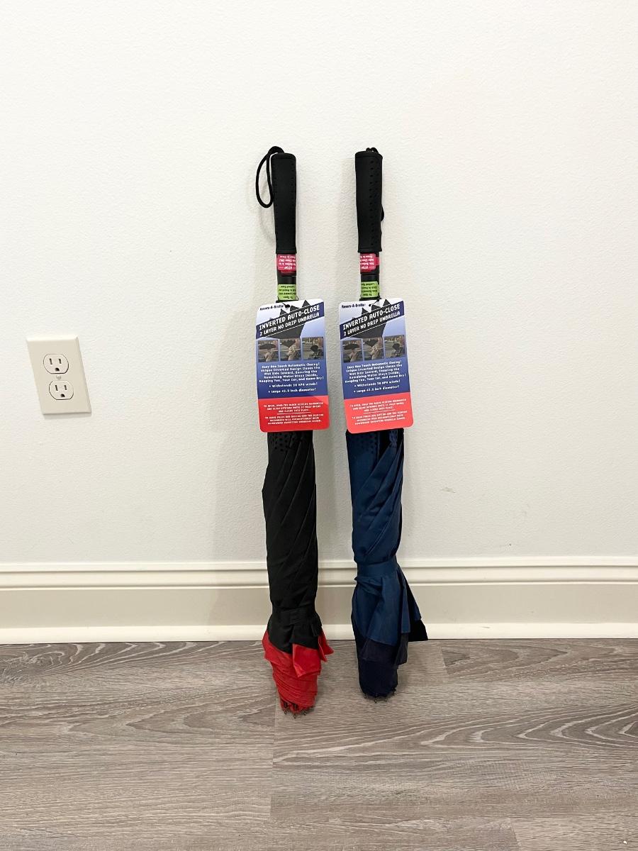 REVERS-A-BRELLA ~ Pair (2) ~ New ~  Inverted Auto Close Black & Navy Umbrellas