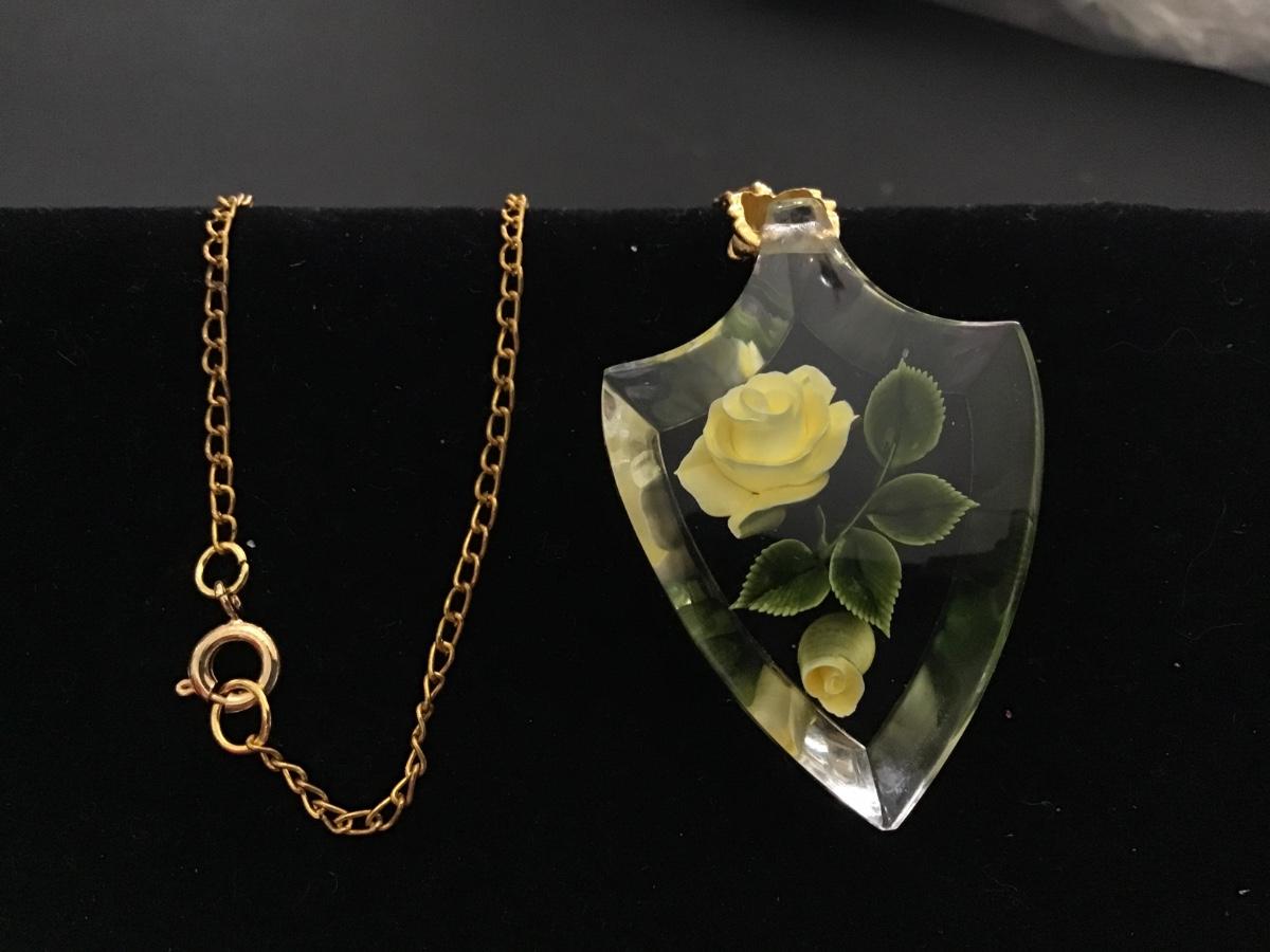 Reverse Carved Lucite Brooch Yellow Rose Vintage