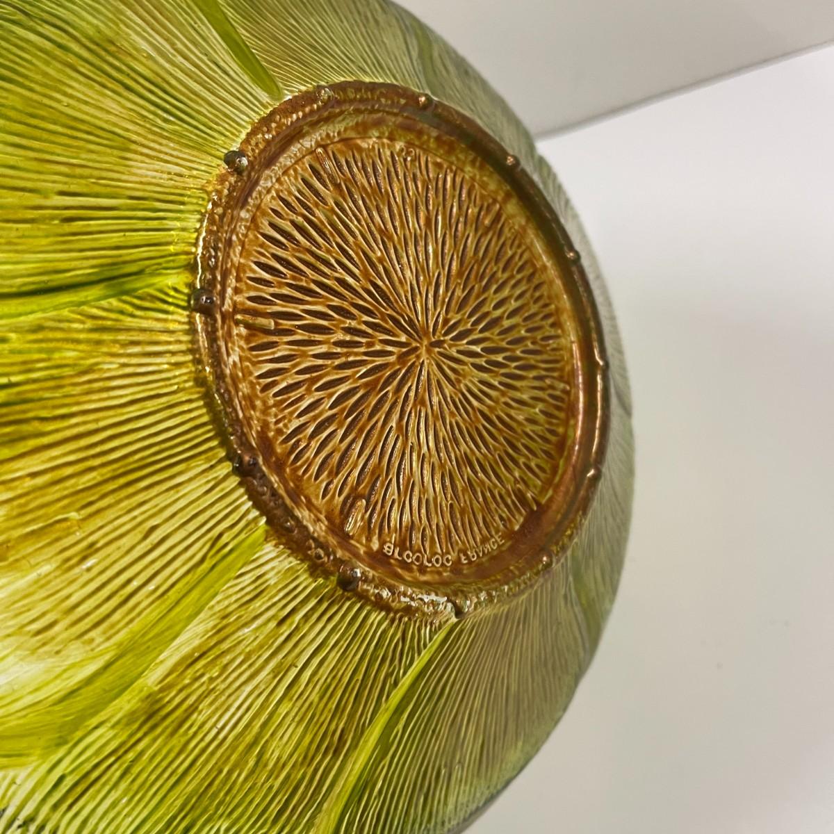Flower shaped, reverse painted glass serving bowl. Excellent condition. 12" diameter x 5 1/2" tall.