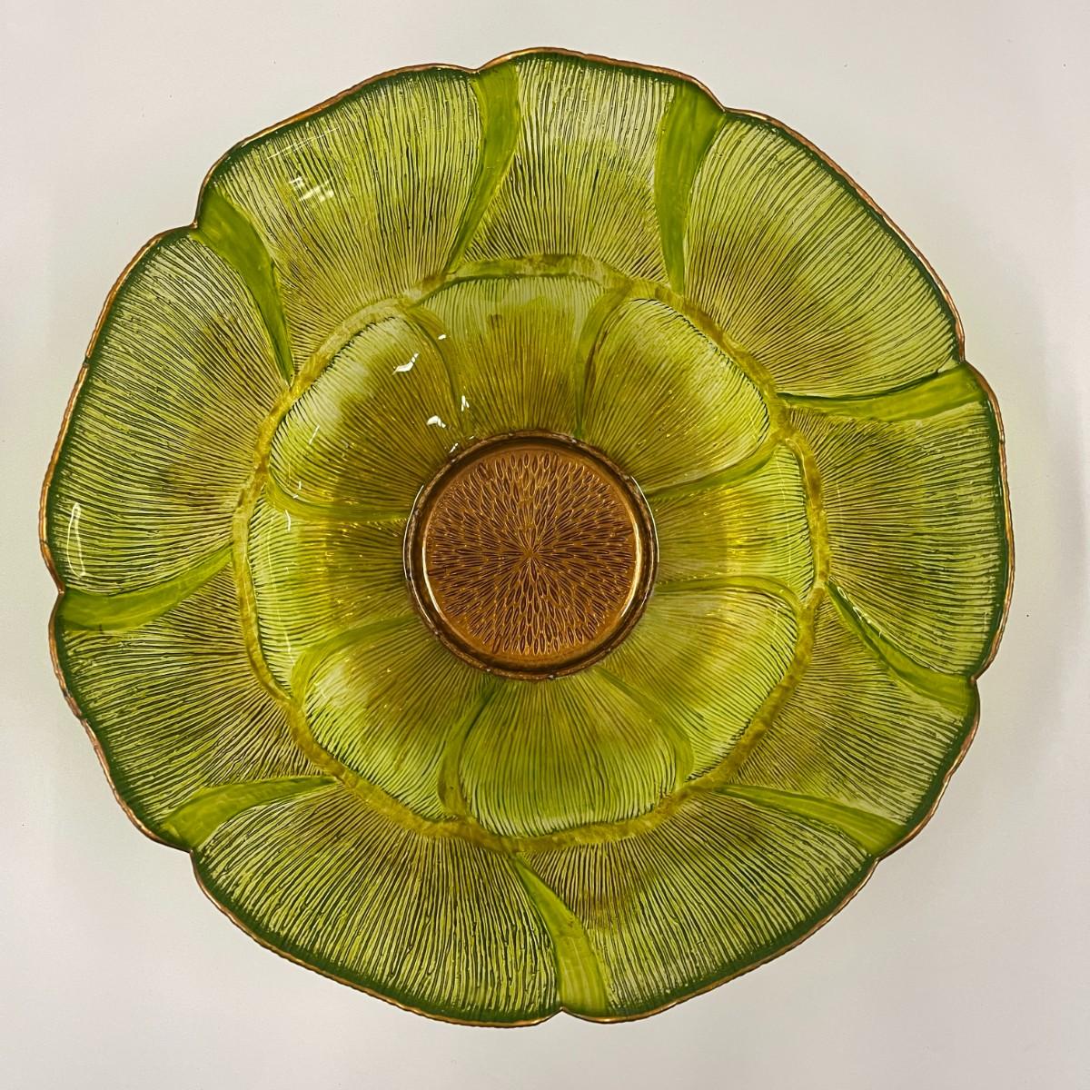 Reverse Painted Flower Shaped Glass Serving Bowl