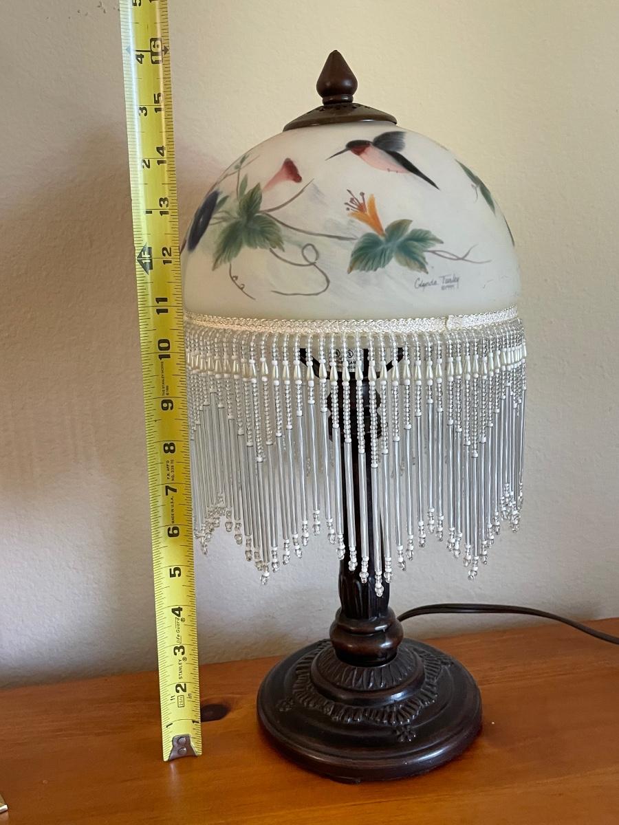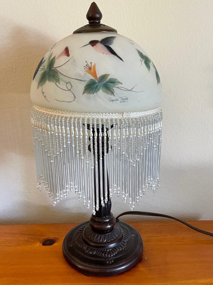 Reverse painted hummingbird lamp Glynda Turley 1999