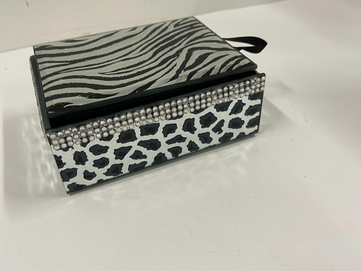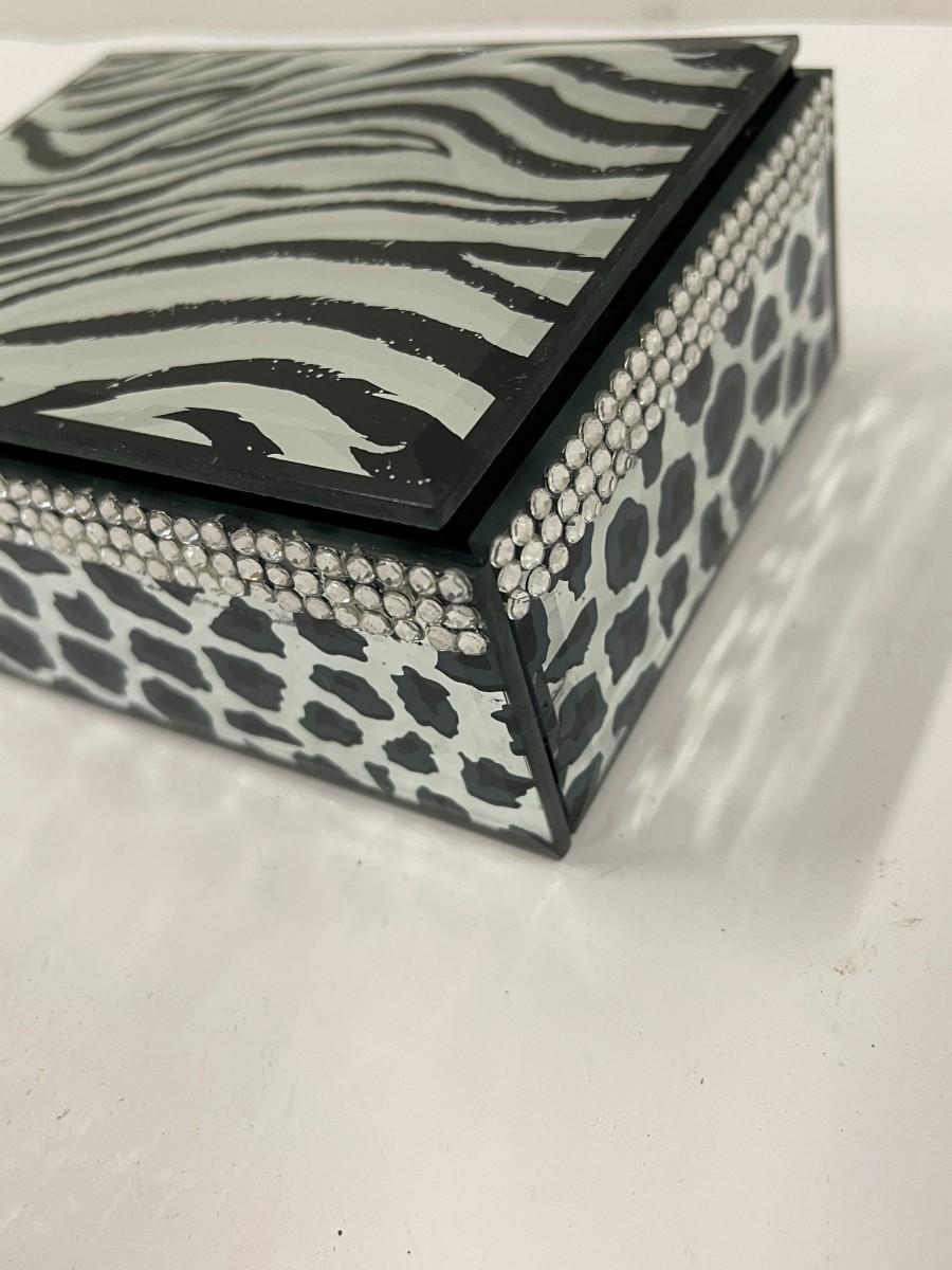 Reverse Painted Mirrored Zebra / Leopard Trinket /Jewelry Box