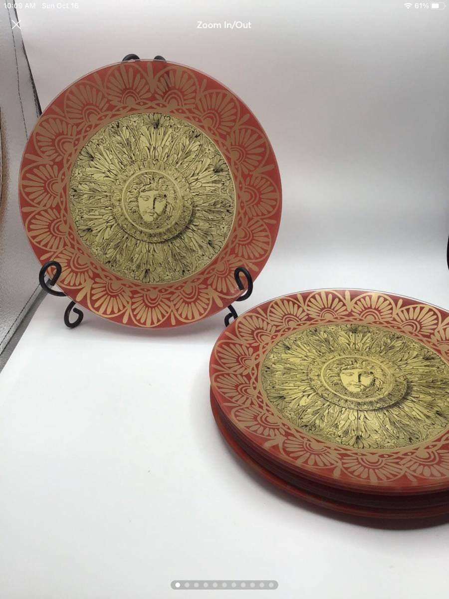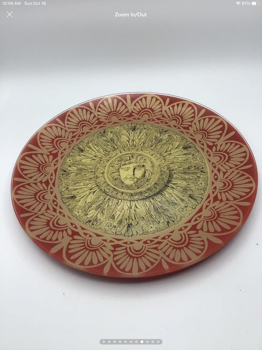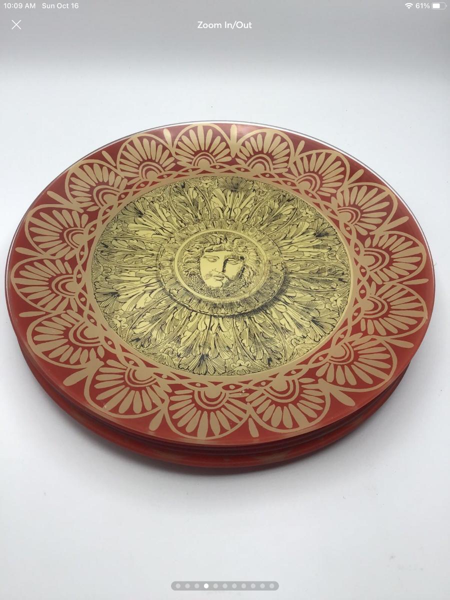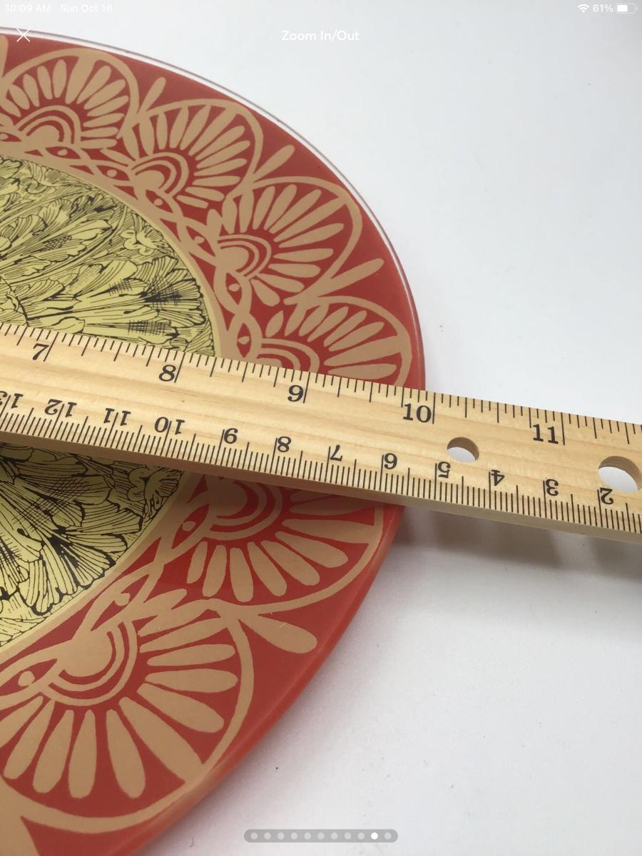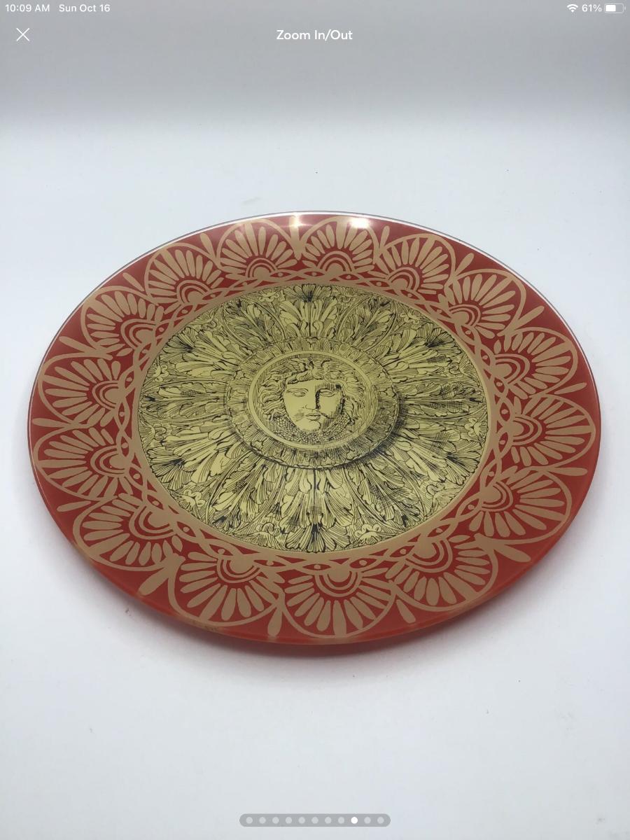 Reverse Painted Round Glass Plates Red Gold Sun Design